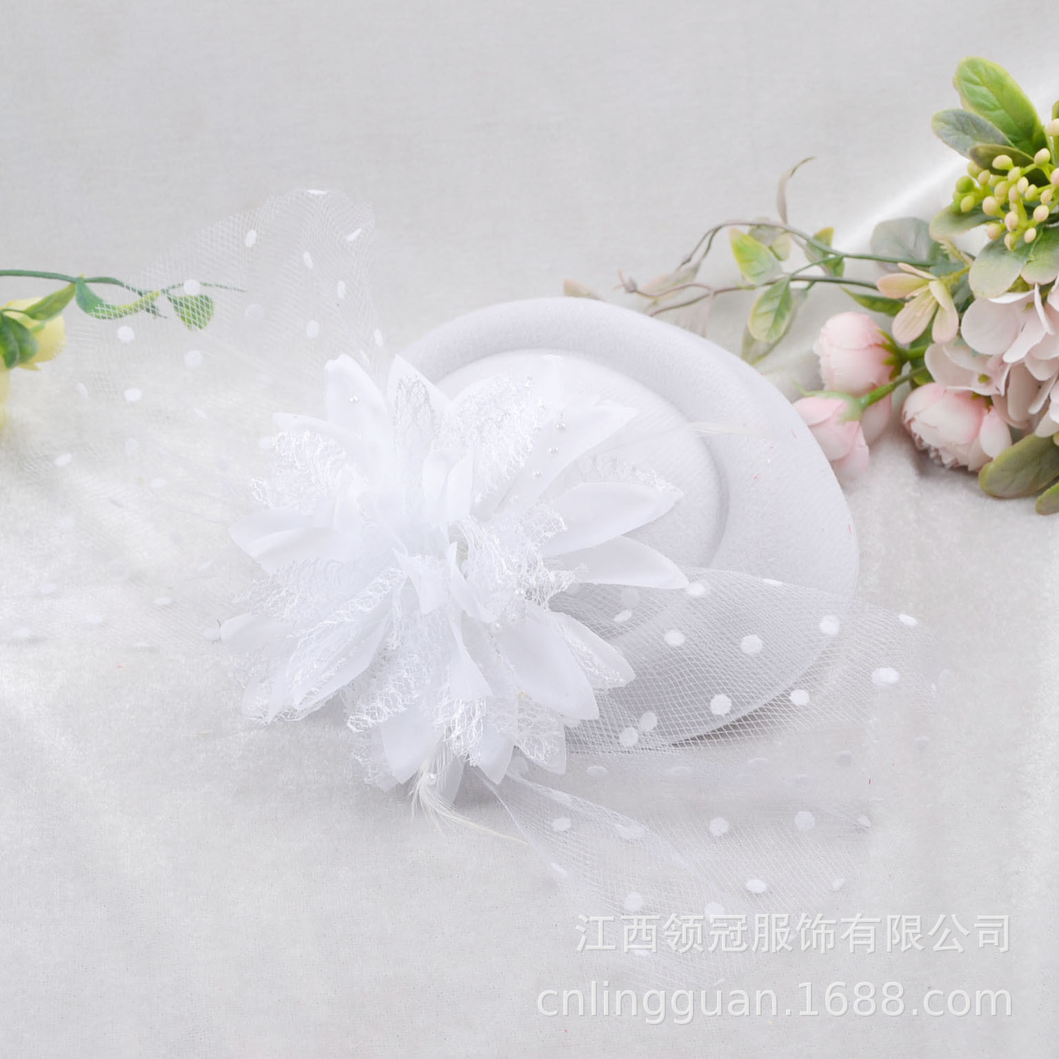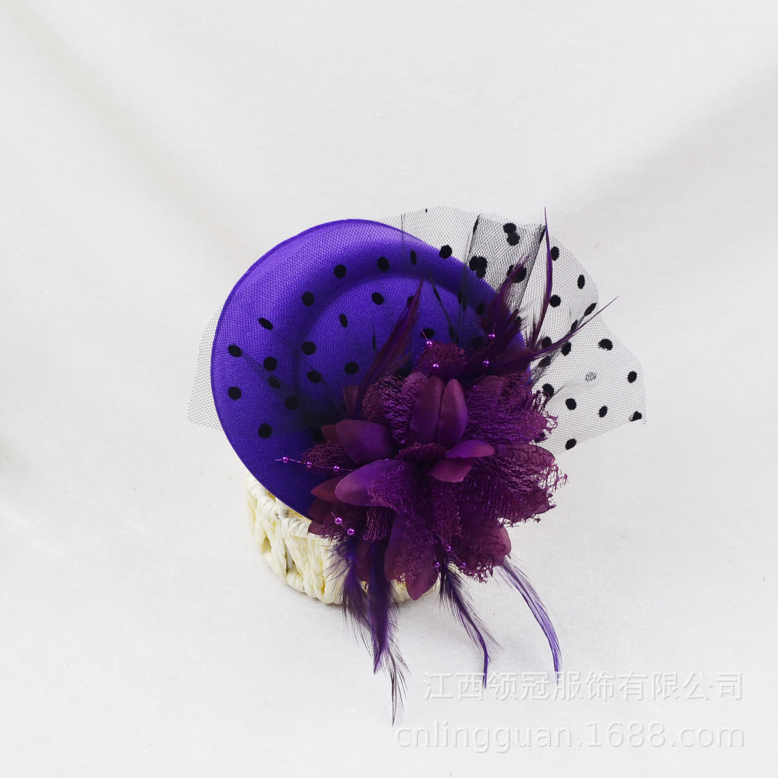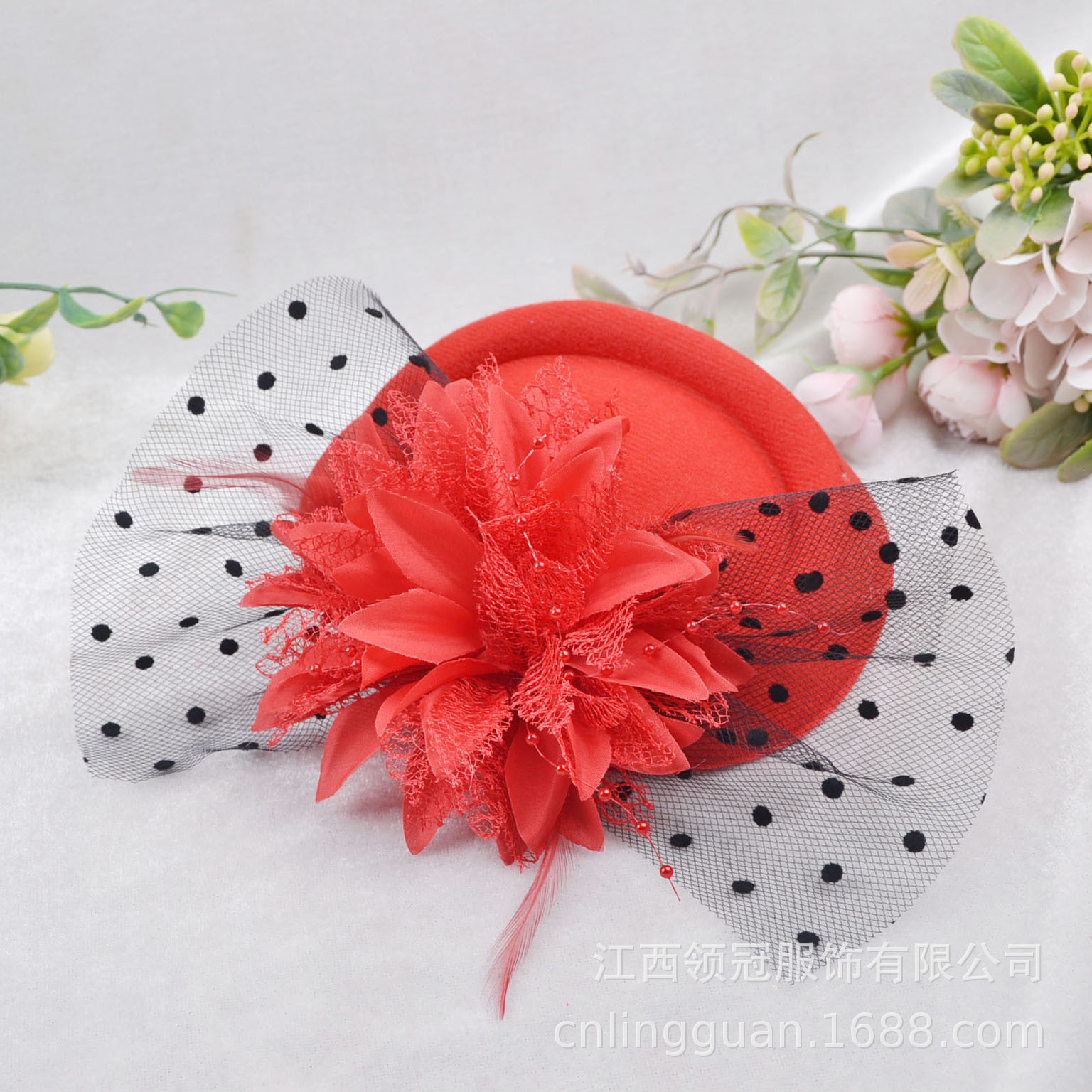 빈티지 인조 울 토퍼 모자 진주 깃털 꽃 머리핀 블랙 도트 대형 메쉬 모자 작은 모자 머리핀