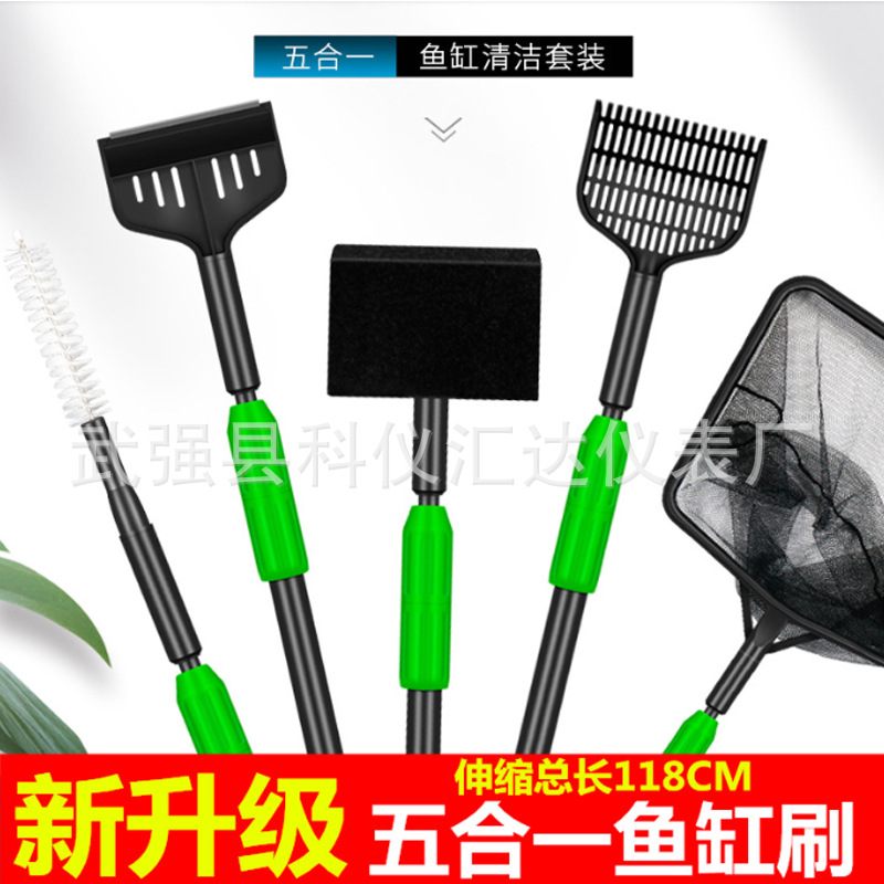 어항 브러시 수족관 5 대 1 텔레스코픽 낚시 청소 브러시 긴 손잡이 브러시 청소 조류 긁기 칼 청소 도구 제조업체스토어 가기