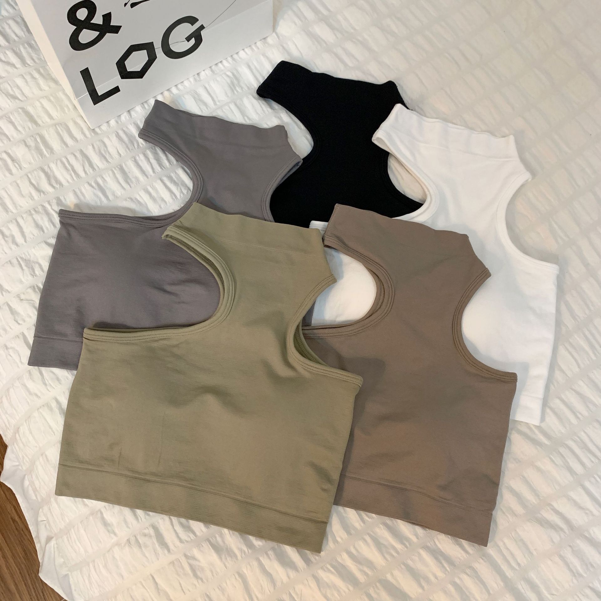 이른 가을 새로운 스타일 여성용 하프 하이 넥 조끼 아우터 오프 숄더 슬림 핏 가슴 패드 민소매 탑 유행