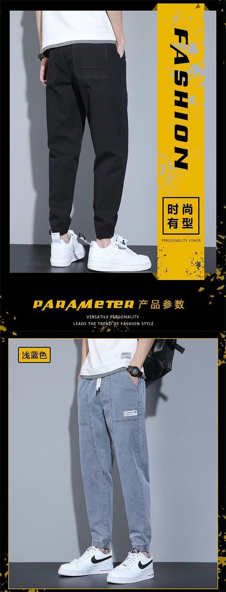 청바지 남성 가을 새로운 한국 스타일 봄 느슨한 다리 도구 라벨링 캐주얼 패션 트렌드 9 점