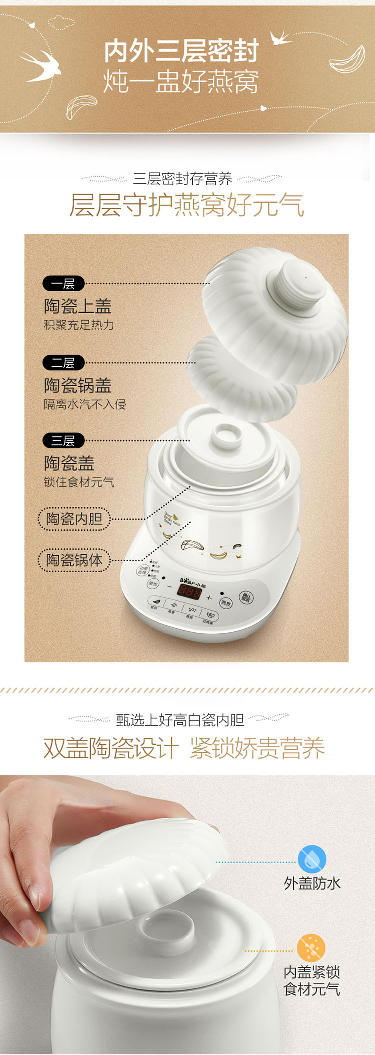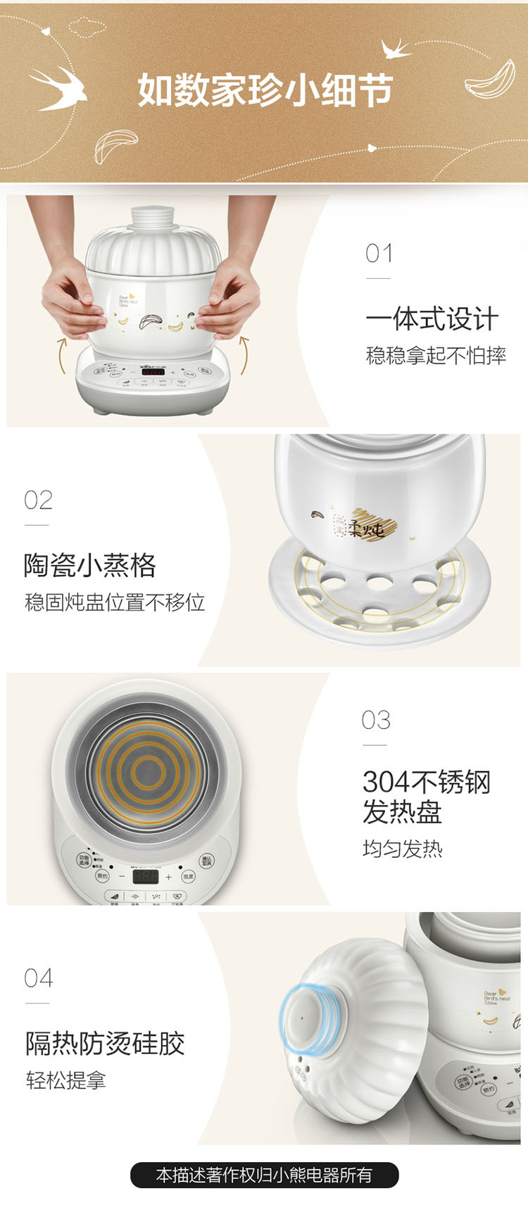 곰/곰 DDZ-B06R1 방수 전기 스튜 냄비 흰색 도자기 새의 둥지 전기 스튜 냄비 미니 죽 요리 냄비