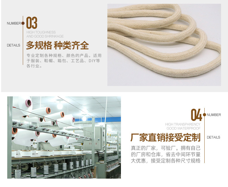 32가닥 암호화 코어드 로프, 의류 액세서리, 코어드 면 로프, 천 가방, 끈, 바지 허리밴드, 모자, 드로스트링 끈스토어 가기