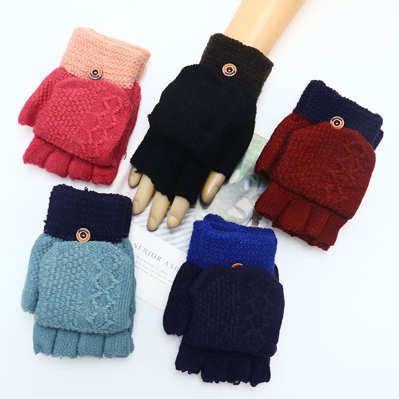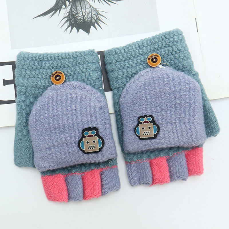 플립탑 모직 장갑 어린이용 두꺼운 반장갑 플리스 안감 방한 니트 여학생 남학생 가을 겨울 도매 만화스토어 가기