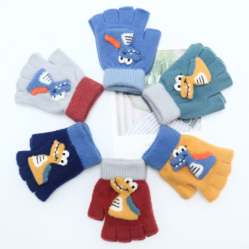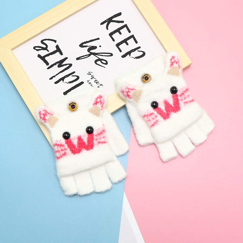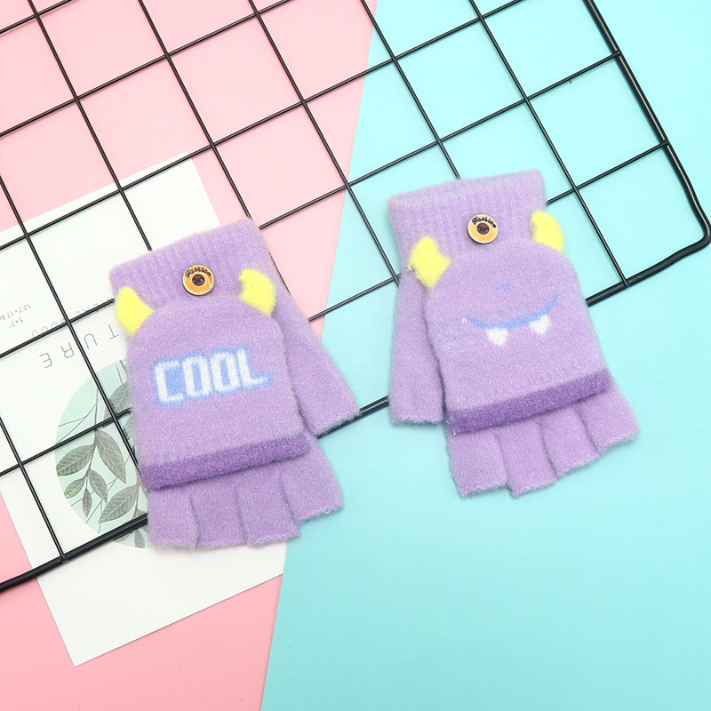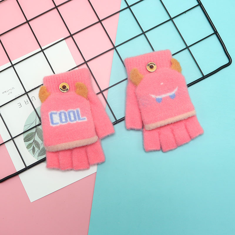 플립탑 모직 장갑 어린이용 두꺼운 반장갑 플리스 안감 방한 니트 여학생 남학생 가을 겨울 도매 만화