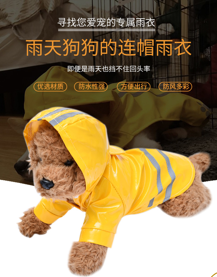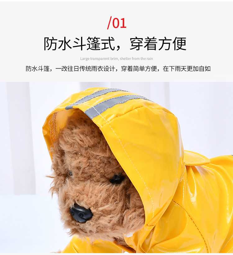 공장 도매 PU 반사 스트립 후드 애완 동물 비옷 작은 개 테디 고양이 애완 동물 옷 개 비옷