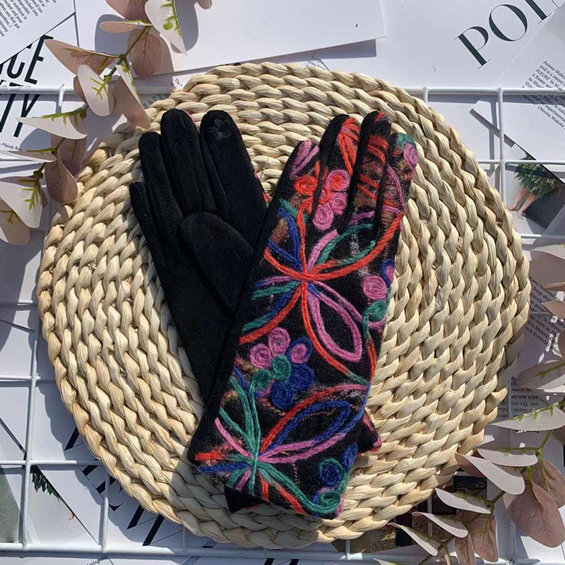 재고 내셔널 스타일 장갑 패션 자수 야외 스포츠 따뜻한 장갑 승마 손가락 장갑 도매스토어 가기