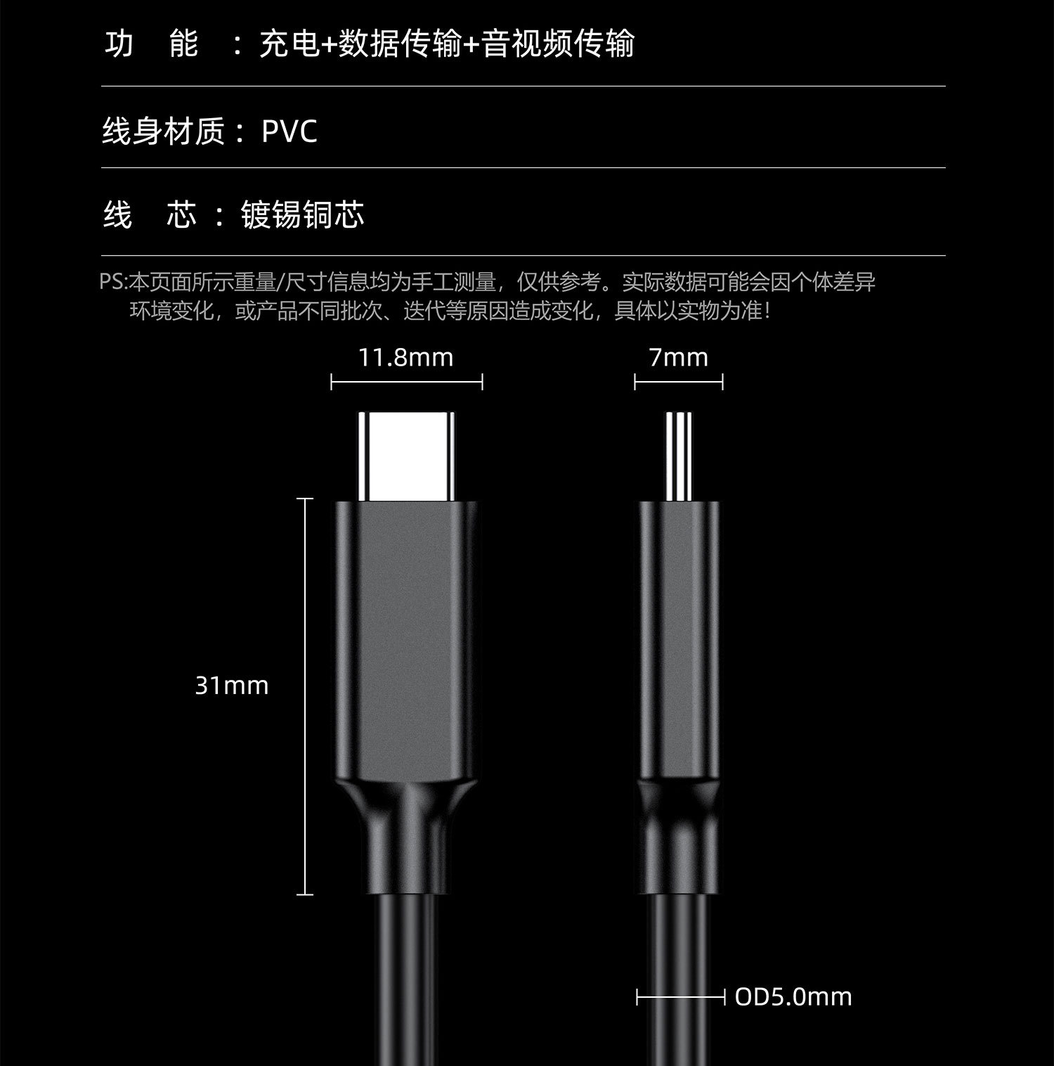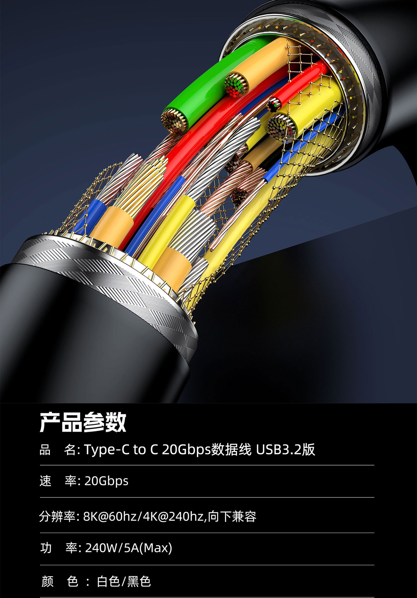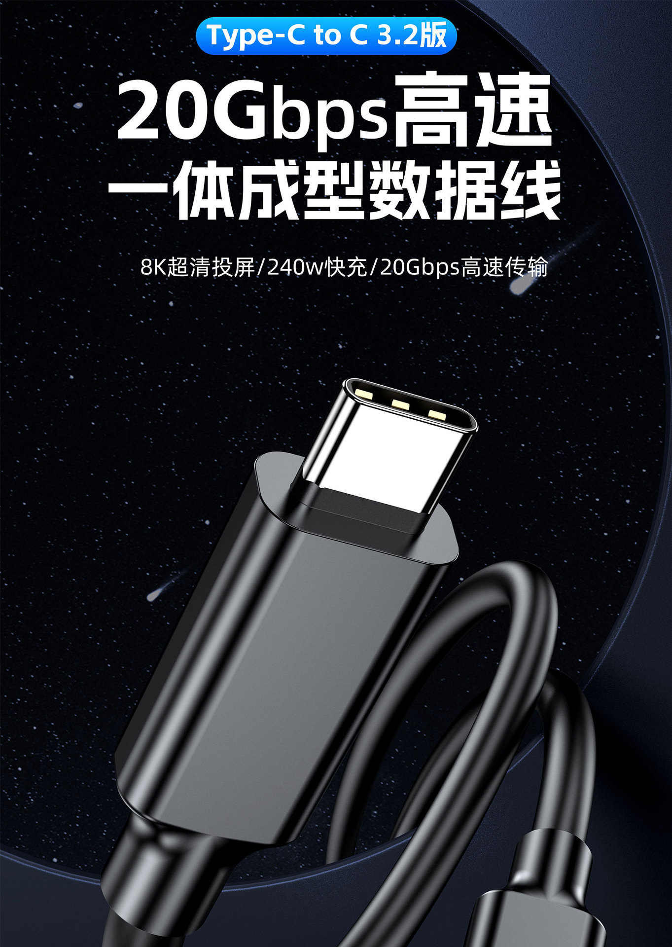 데이터 라인 Type-C 양방향 USB3.2Gen2 * 2 수-수 PD100W 고속 충전 라인 전체 기능 4K 프로젝션 라인