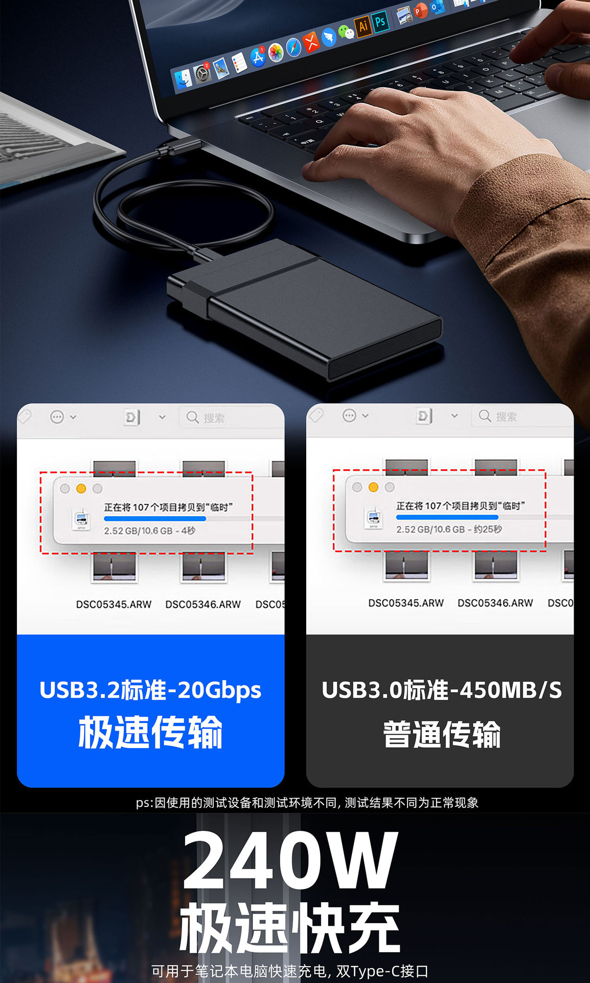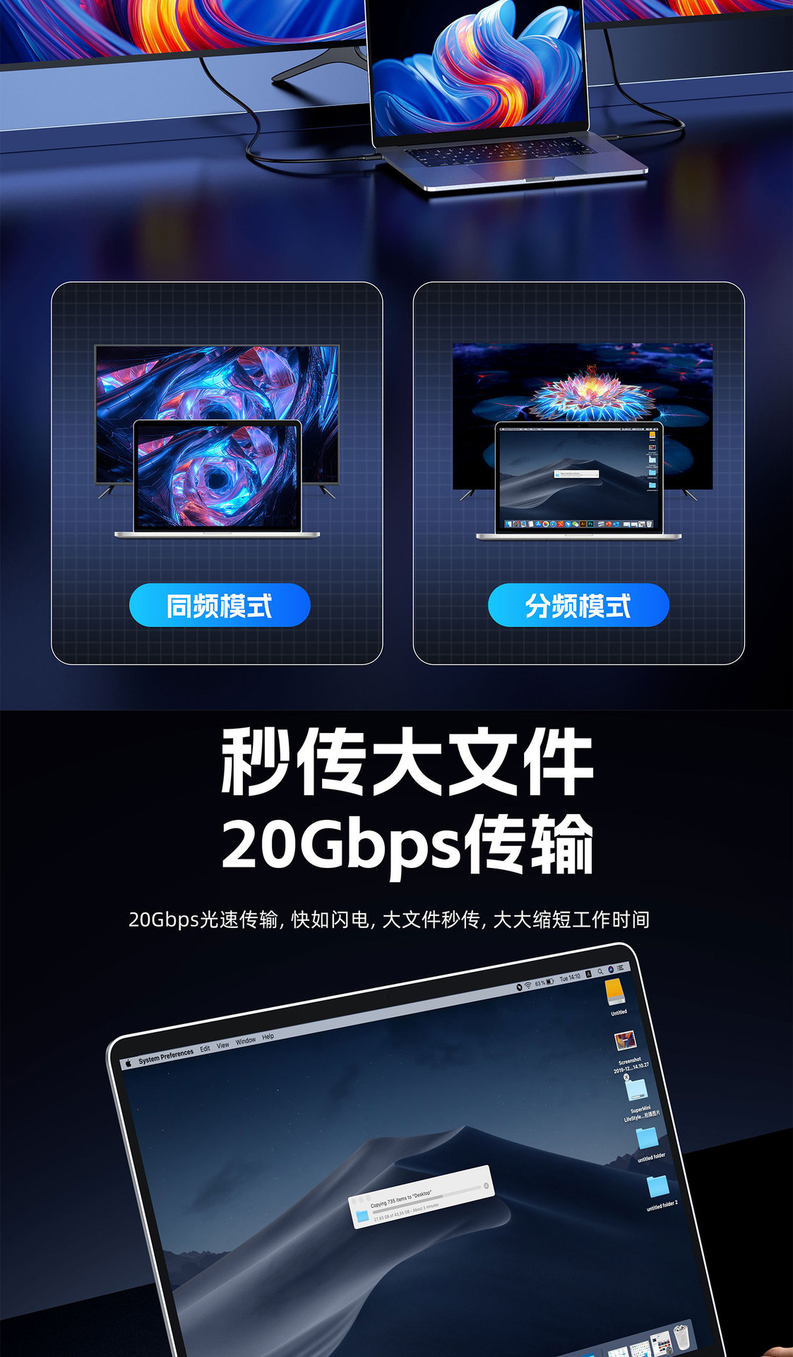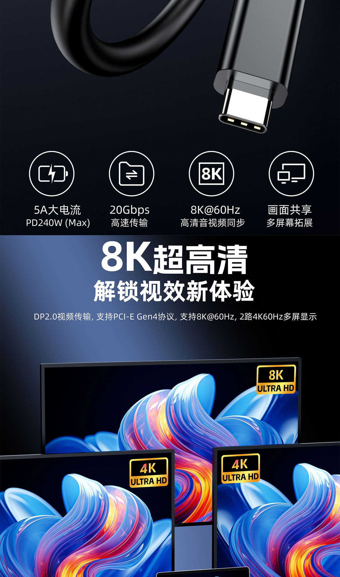 데이터 라인 Type-C 양방향 USB3.2Gen2 * 2 수-수 PD100W 고속 충전 라인 전체 기능 4K 프로젝션 라인