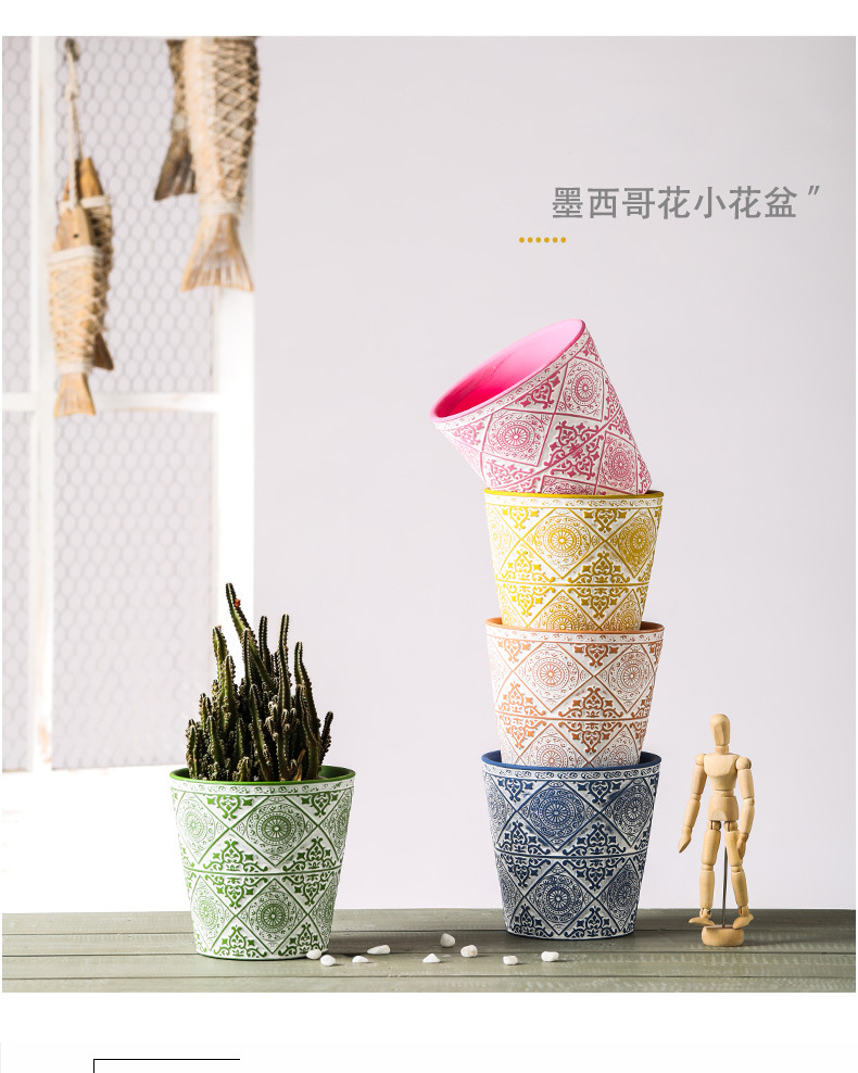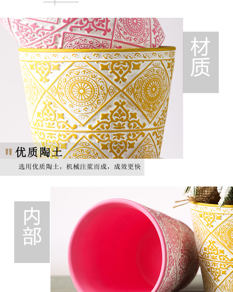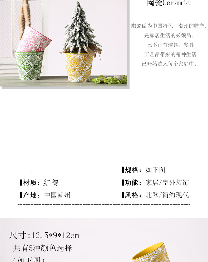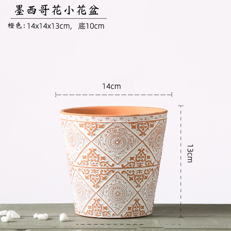 북유럽 예술 기계 조각 된 패턴 빨간 도자기 화분 꽃 다육 화분 통기성 일반 굽기 라운드 간단한 세라믹 냄비