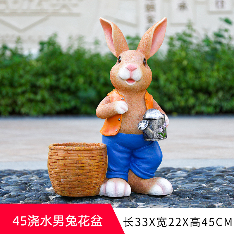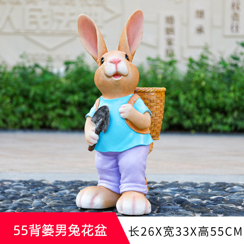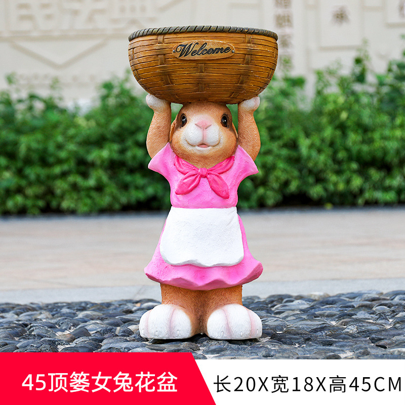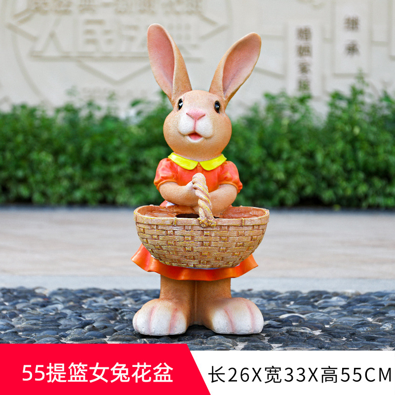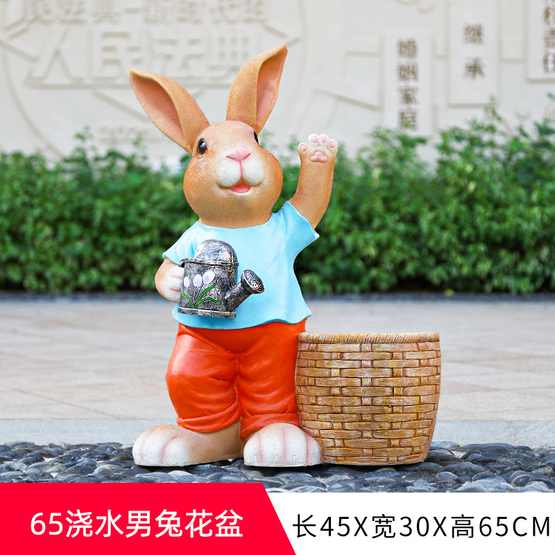 토끼 장식품 유리 섬유 화분 야외 크리 에이 티브 잔디 장식 정원 발코니 안뜰 유치원 조각품