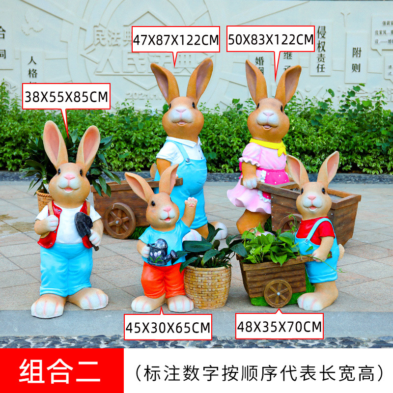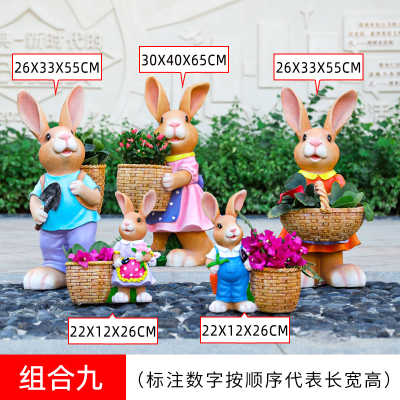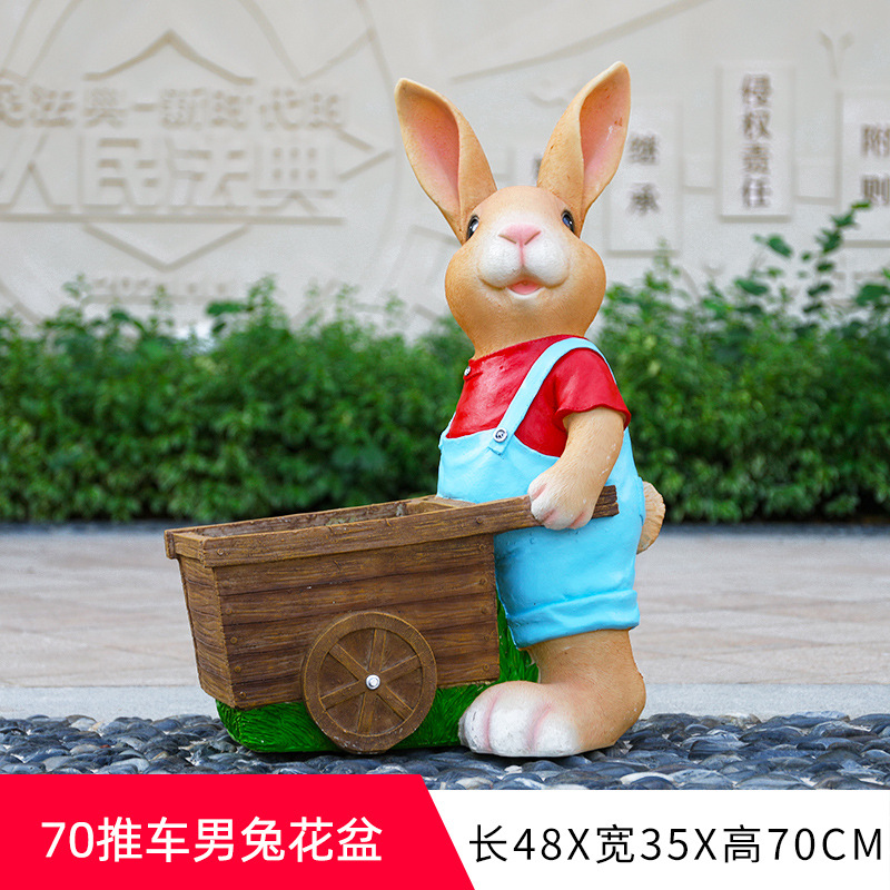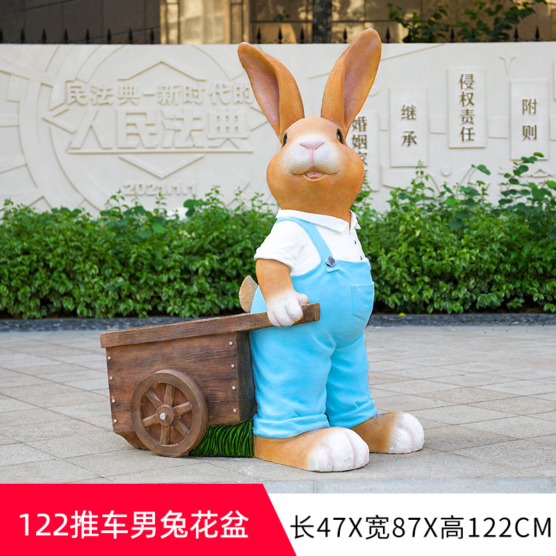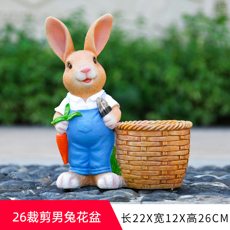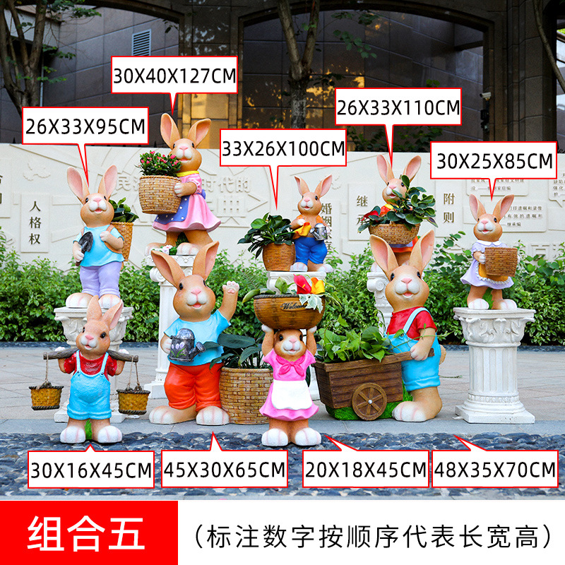 토끼 장식품 유리 섬유 화분 야외 크리 에이 티브 잔디 장식 정원 발코니 안뜰 유치원 조각품