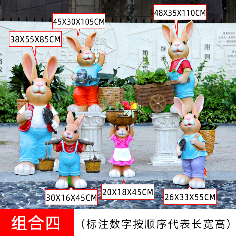 토끼 장식품 유리 섬유 화분 야외 크리 에이 티브 잔디 장식 정원 발코니 안뜰 유치원 조각품스토어 가기