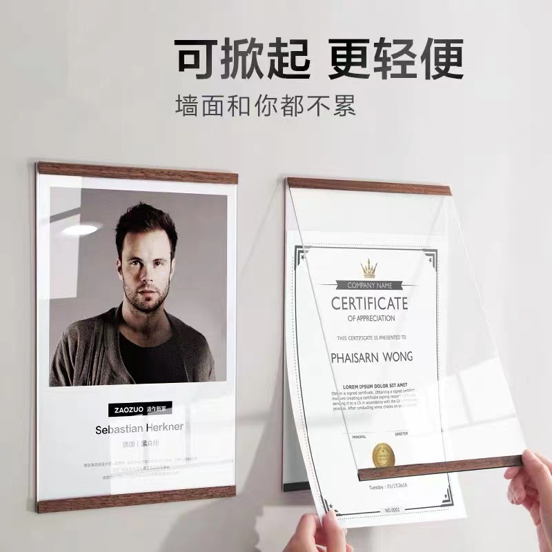 교사의 간략한 소개 기업 문화 벽 A3 아크릴 마그네틱 포토 프레임 A4 명예 디스플레이 벽 목재 방지 마그네틱 디스플레이 카드