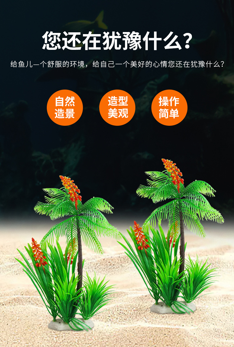 수족관 조경용 모조 코코넛 나무 장식물, 전경 수초, 플라스틱 꽃, 인조 꽃, 모형 수초스토어 가기