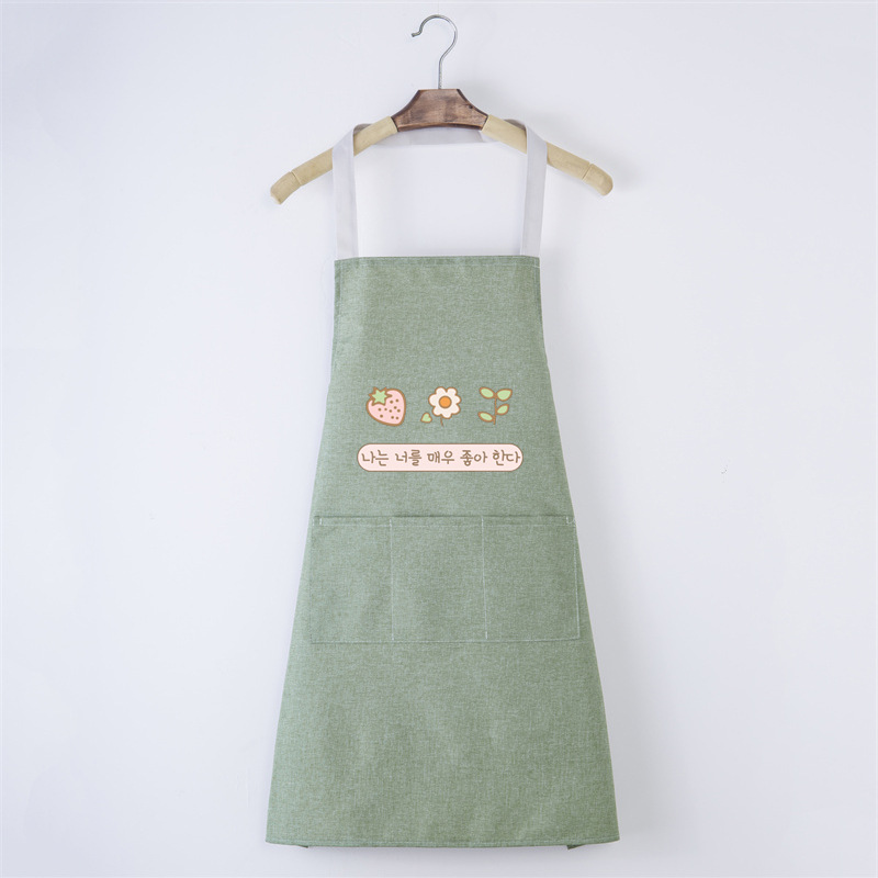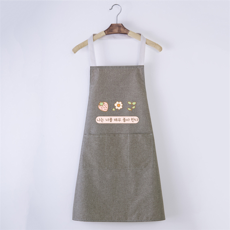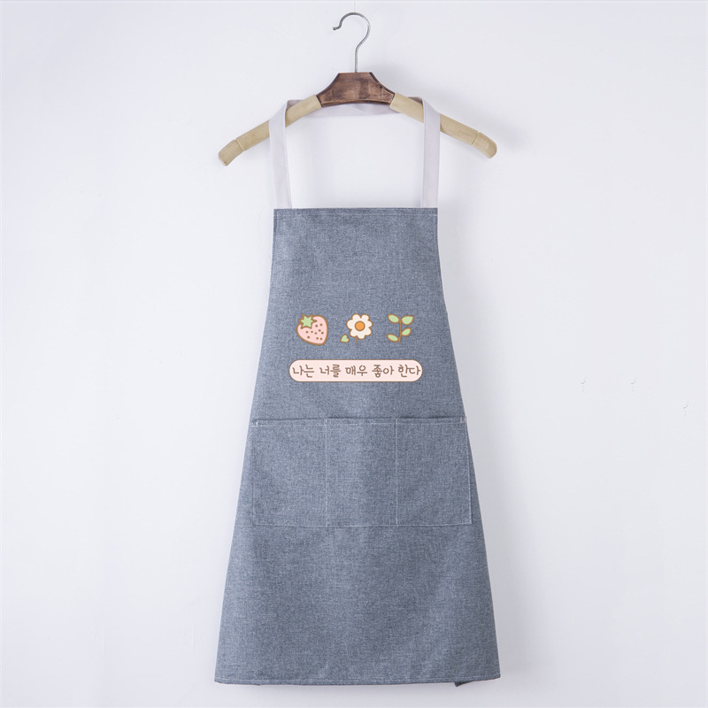주방 앞치마 방수 코튼 린넨 가정용 간단한 베이킹 방수 허리 카페 호텔 인쇄 광고 앞치마