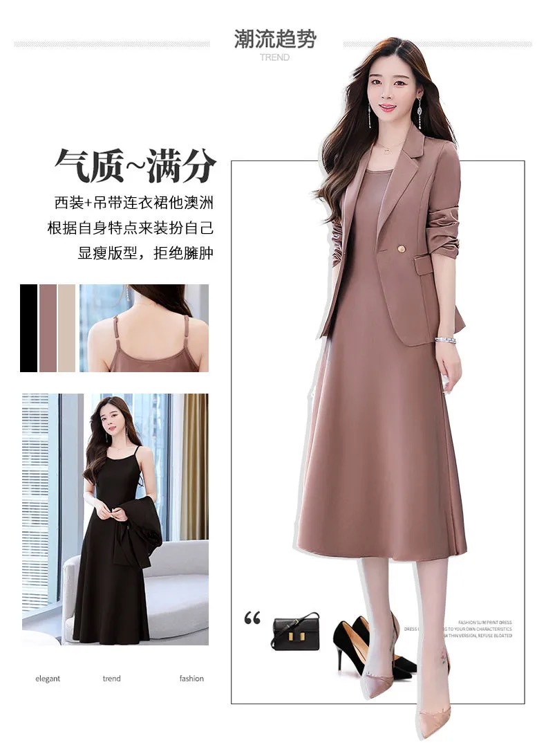 2026년 가을 겨울 신상 패션 한국 스타일 슬림핏 우아한 작은 정장 스트랩 드레스 투피스 여성 원피스 트렌드