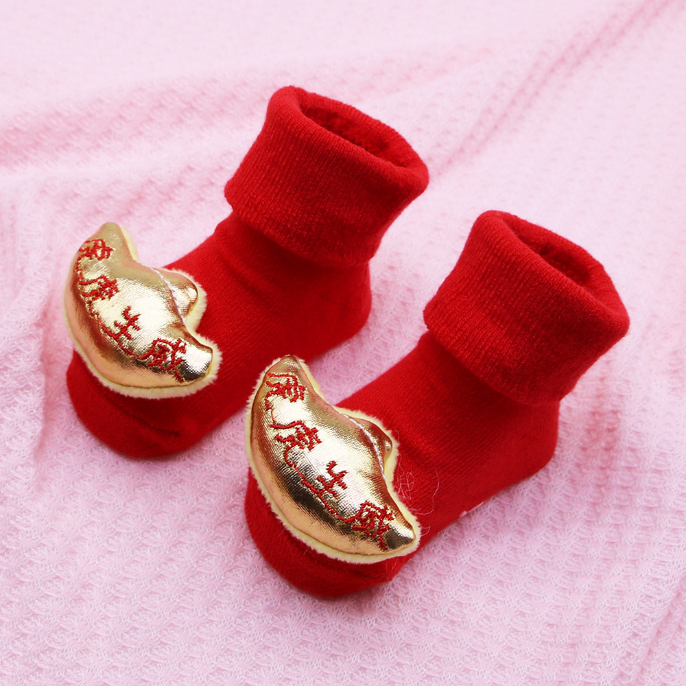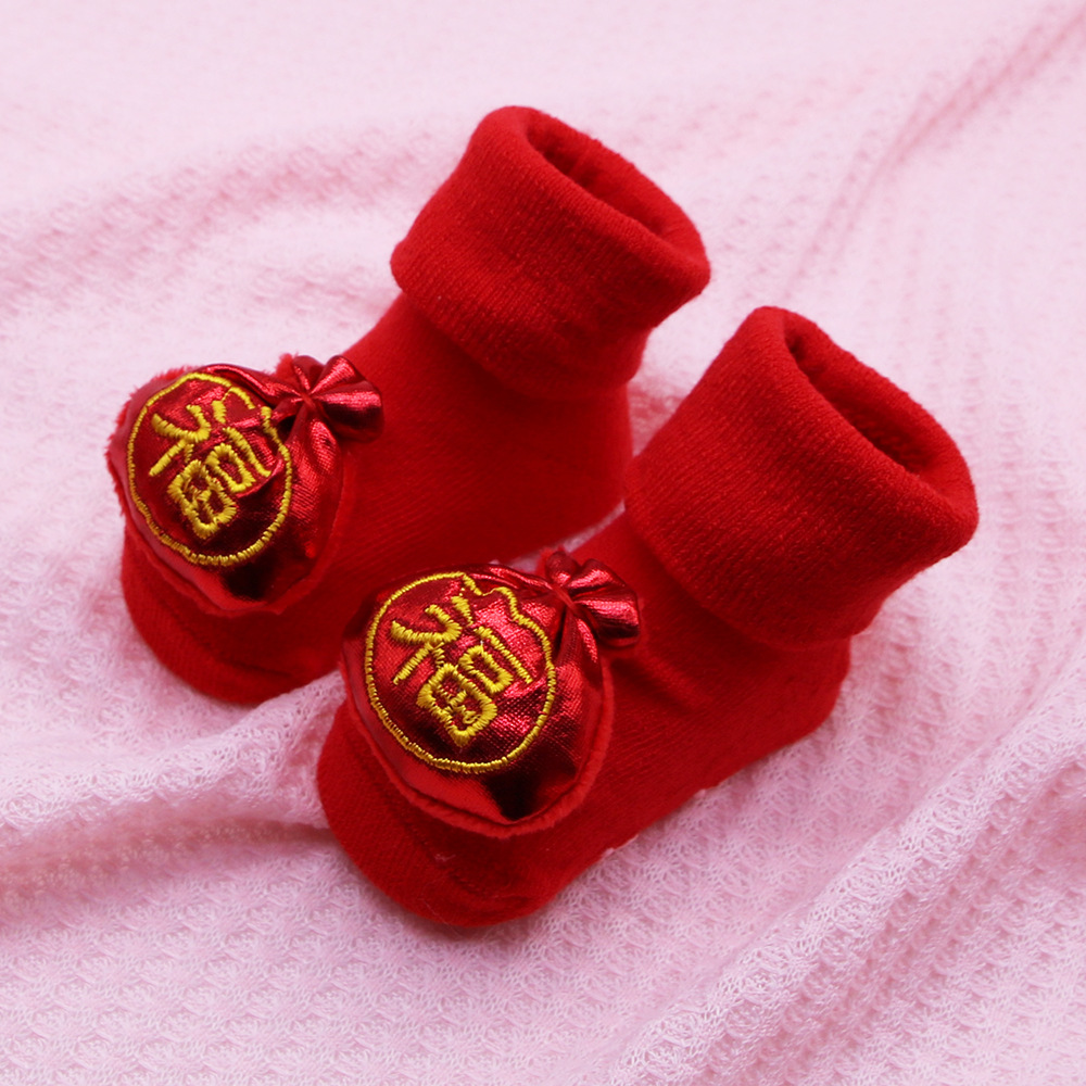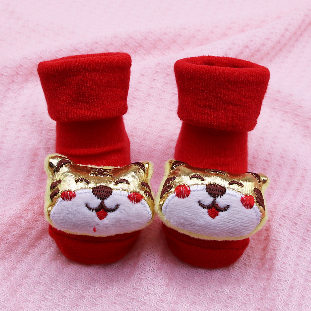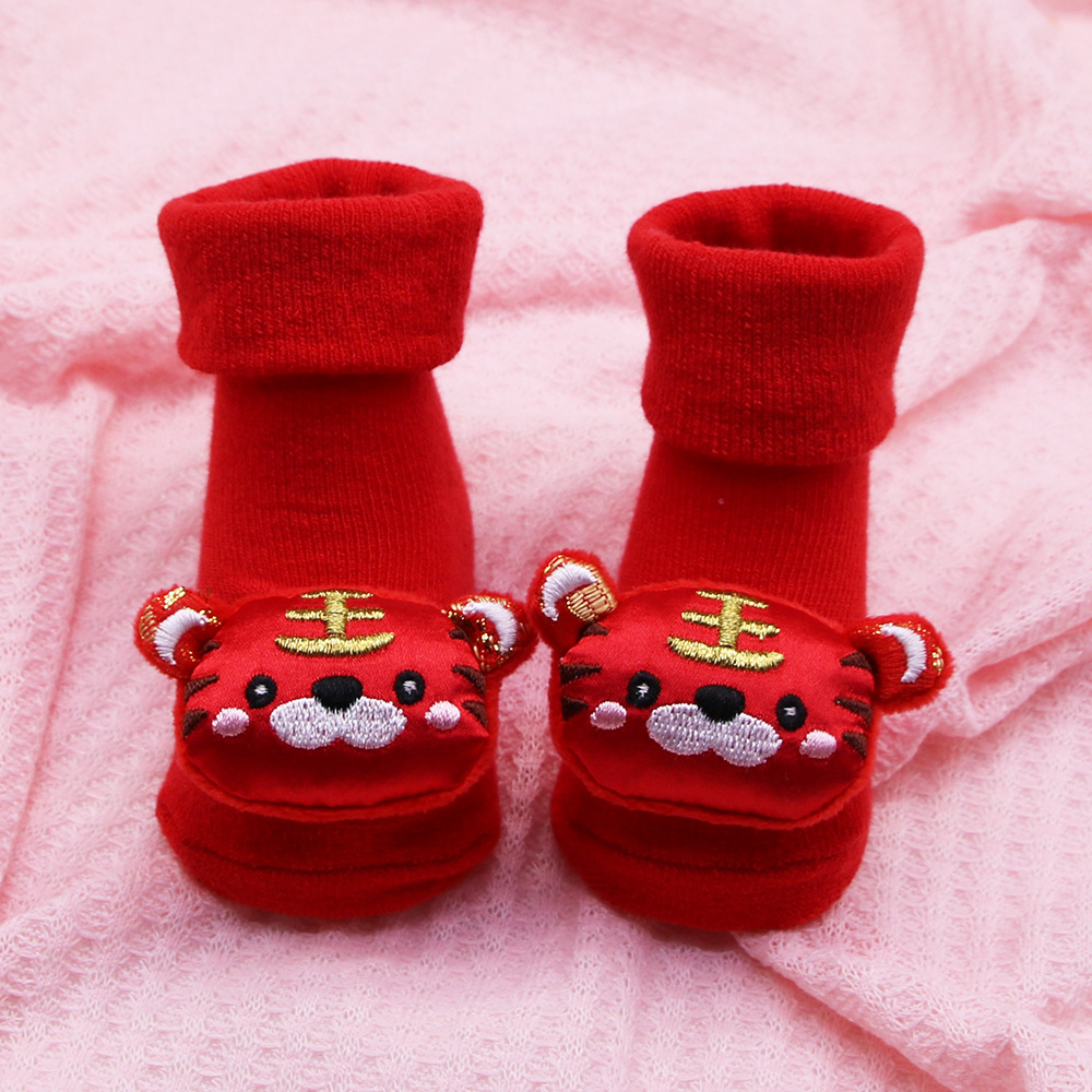 2022 새로운 호랑이 빨간 양말 0-12 개월 신생아 아기 양말 봄과 가을 사계절 아기 양말 원피스 양말 모두 일치