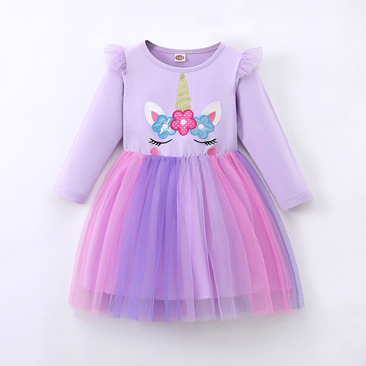 크리스마스 소녀 유니콘 자수 니트 드레스 가을 겨울 어린이 긴팔 퍼프 공주 드레스 해외 소량 주문스토어 가기