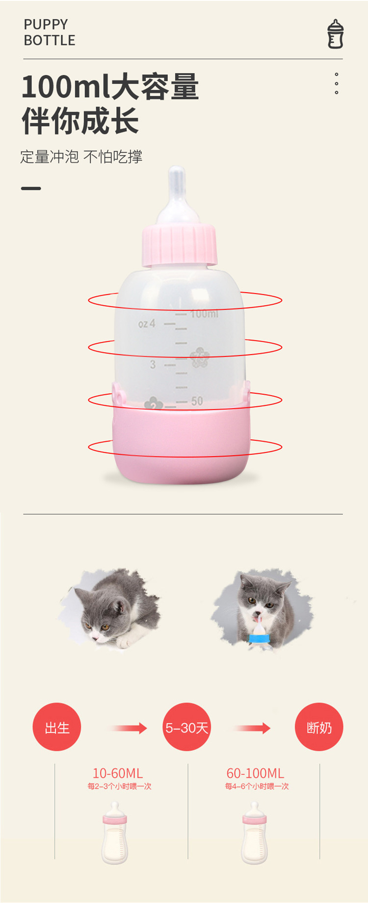 애완동물 용품, 고양이 및 강아지 젖병, 새끼 고양이 및 강아지 수유 장치, 질식 방지 및 고온 방지, 제조업체 재고 도매