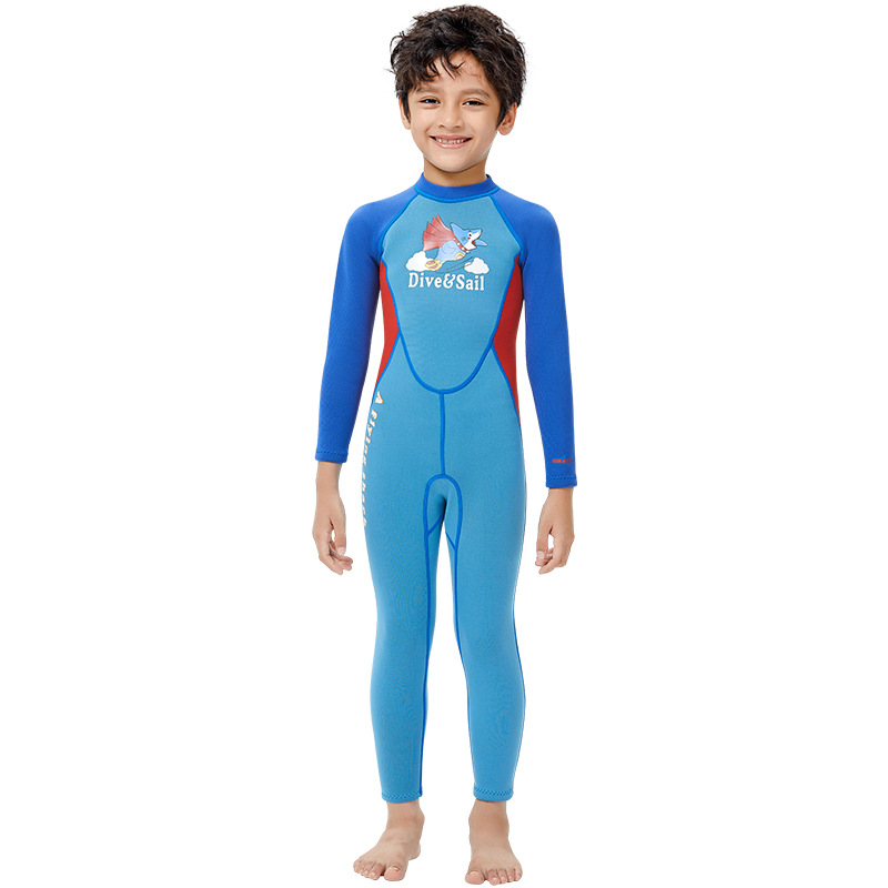 새로운 2.5mm 어린이 다이빙 세트 따뜻한 수영복 소년 원피스 긴 소매 스노클링 서핑 수영 다이빙 어머니 세트스토어 가기