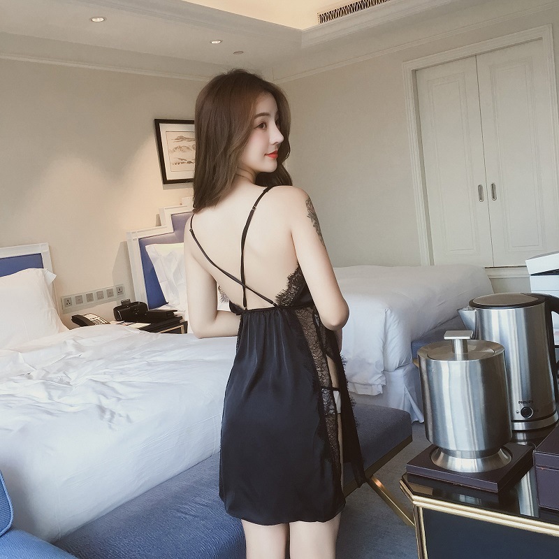 女士性感睡衣睫毛蕾丝吊带睡裙激情套装诱惑露背情趣内衣夏家居服
