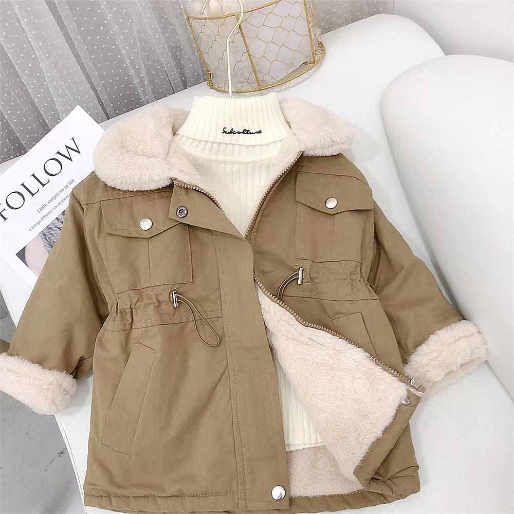 여아 중간 길이 꽉 허리 면 패딩 코트 어린이 기모 두꺼운 면 옷 어린이 아기 여아 파커 코트 겨울 옷