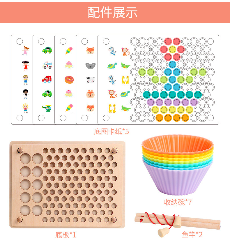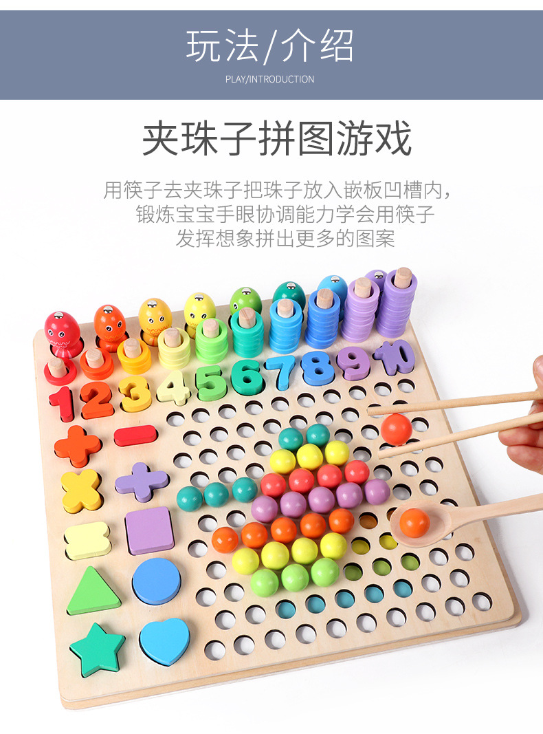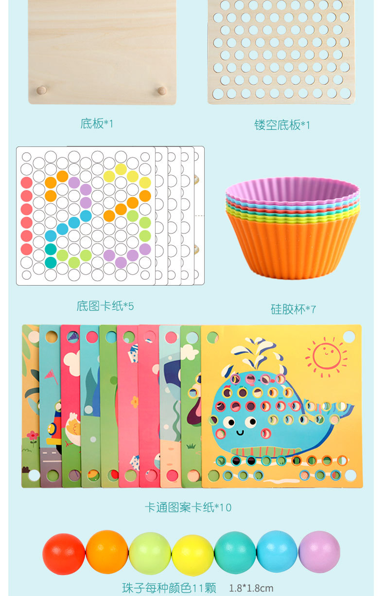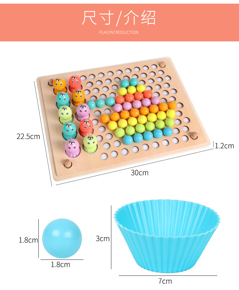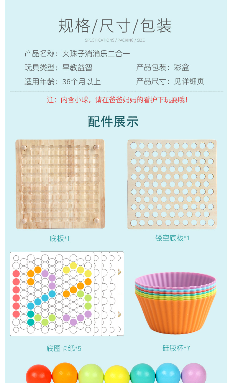 【夹珠子拼图】:22*22*4cm/0.66kg;52*47.5*49.3cm/24kgs,36pcs/箱