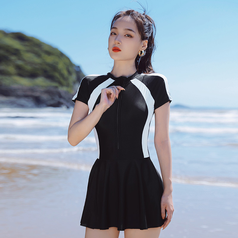 2021 새로운 수영복 여성용 원피스 스커트 인스 타 그램 스타일 슬리밍 배꼽 취재 보수적 인 온천 해변 휴가 수영복