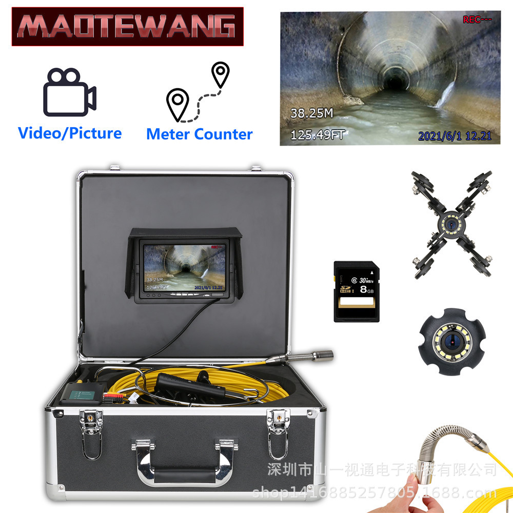 型号:F927DJ-AHD-50M 配置:7寸录像屏送16G卡,录像录音,拍照,5倍电子变焦,直径23mm不锈钢探头,高清720P ,镜头角度145度,蓝宝石镜片,直径5MM/50米管线,4500MA内置电池,带电量显示,带电子计米器,12个白光灯亮度可调,带二个摄像头保护套。