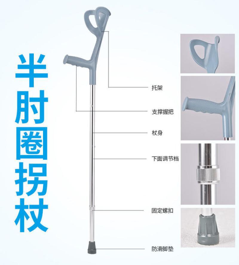 팔꿈치 목발 팔 이중 목발 미끄럼 방지 손 목발 걷기 보조 망원경 팔뚝 스틱 가벼운 재활 목발 재활 지팡이