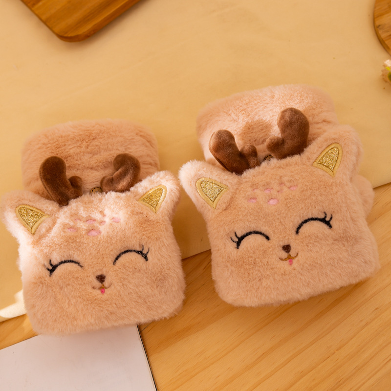 장갑 가을과 겨울 여성 플립 학생 플러시 반 손가락 만화 귀여운 한국 스타일 전시 두꺼운 따뜻한 필기 장갑