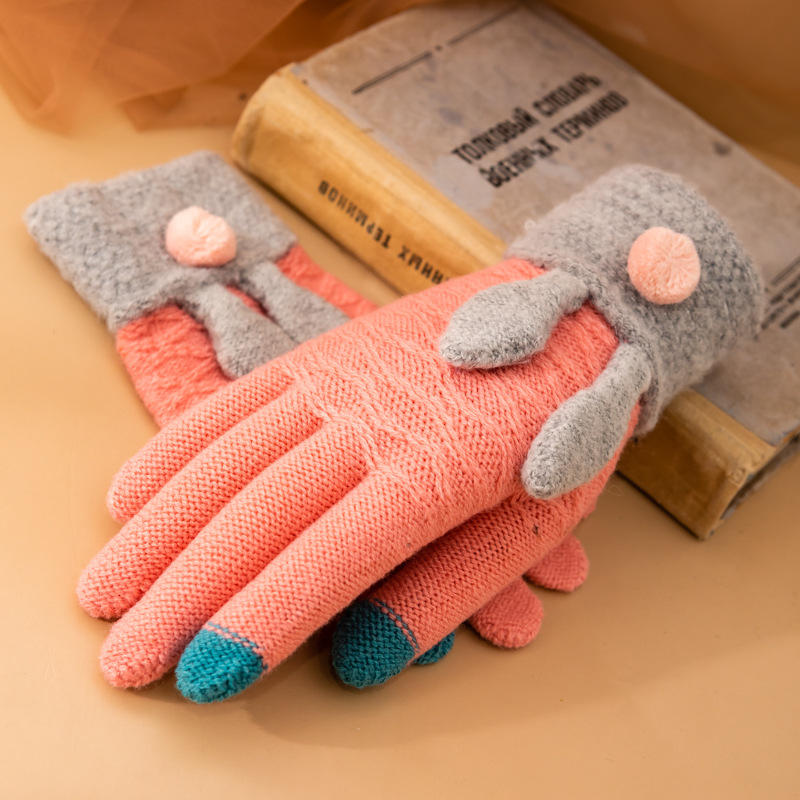 여성과 학생을위한 한국식 니트 모직 장갑 겨울 따뜻한 기모 두꺼운 터치 스크린 타기 사이클링 및 쓰기 손가락