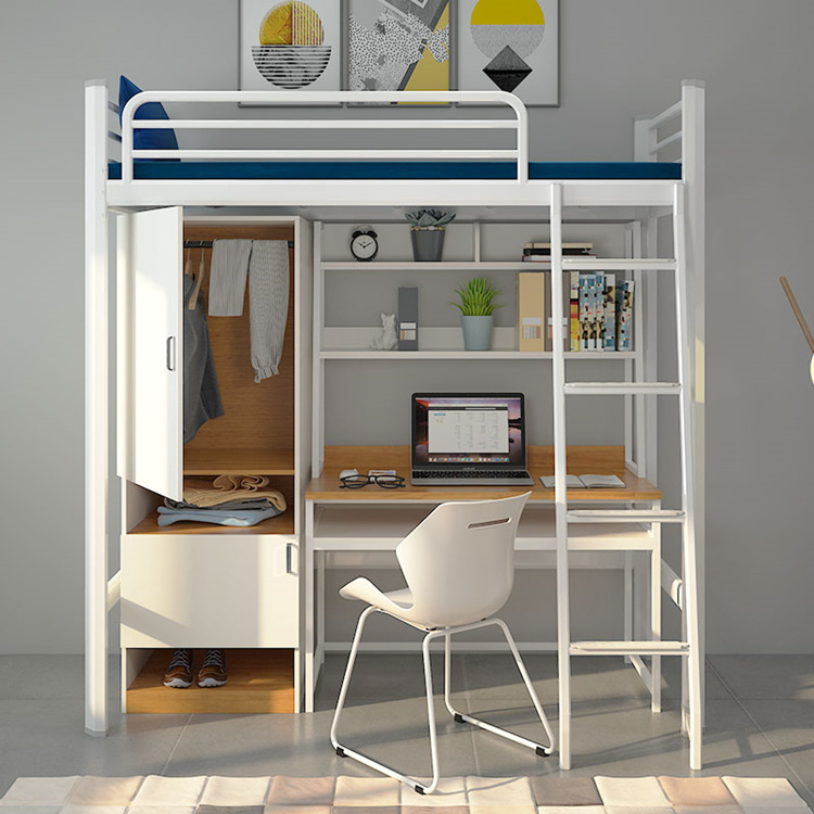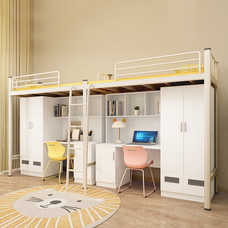 아파트 침대 하단 테이블 기숙사 침대 직원 대학생 침대 가정용 더블 레이어 높고 낮은 침대 통합 콤비네이션 침대