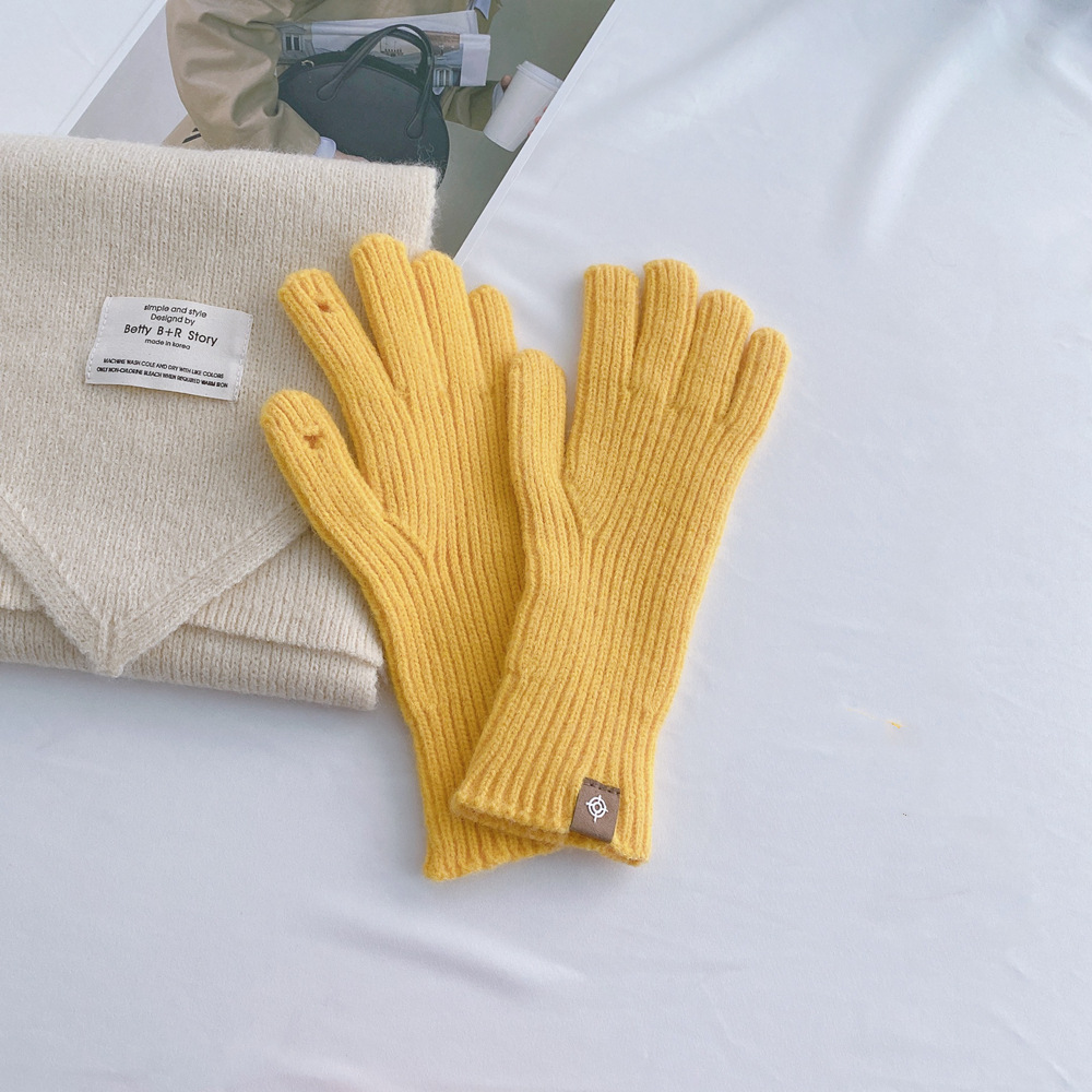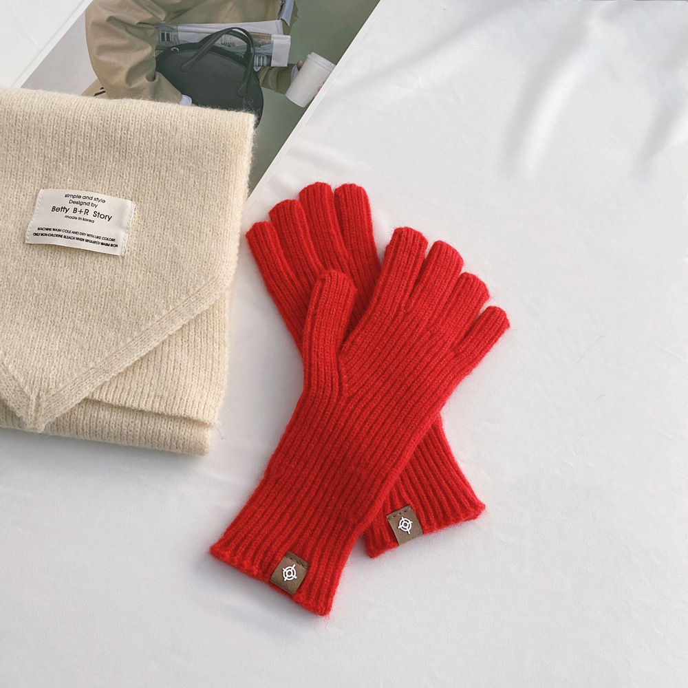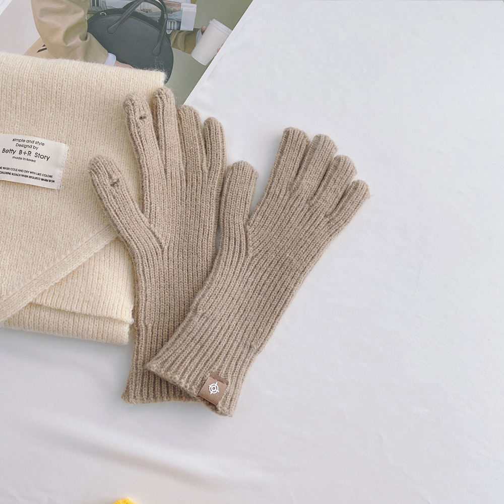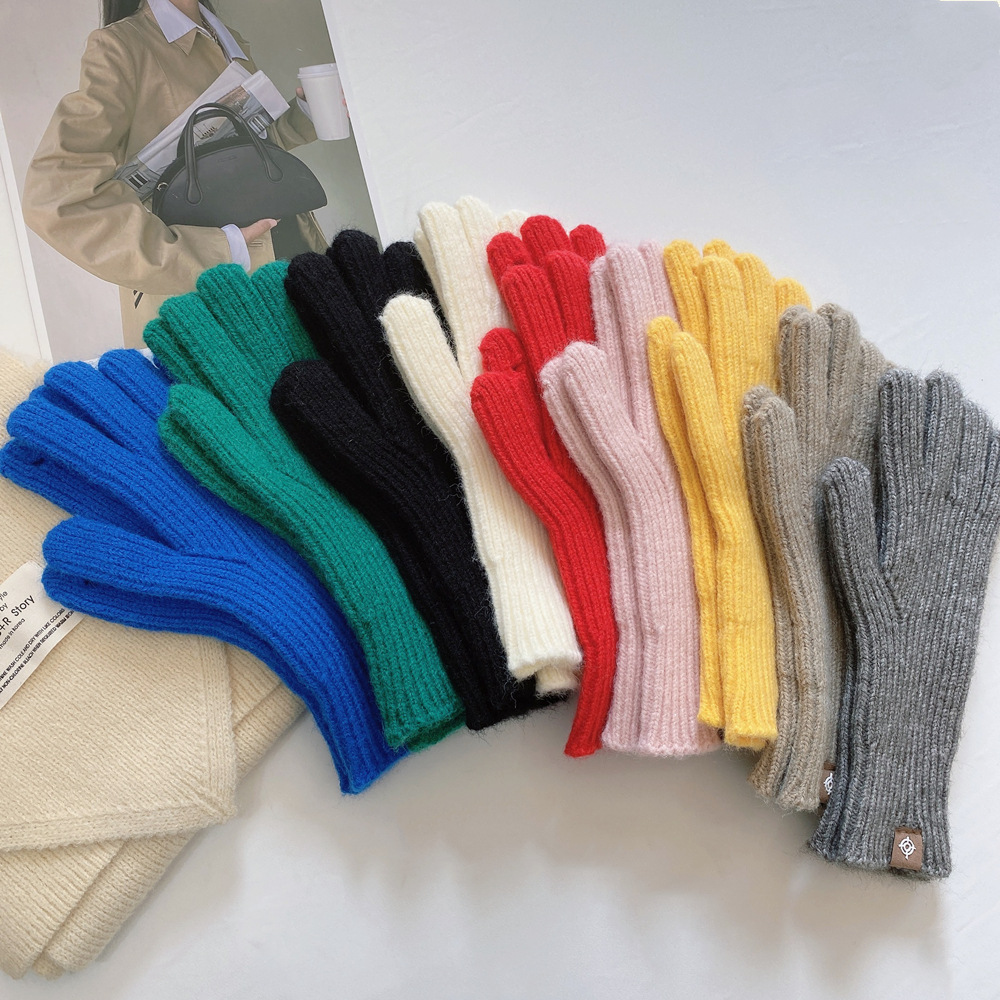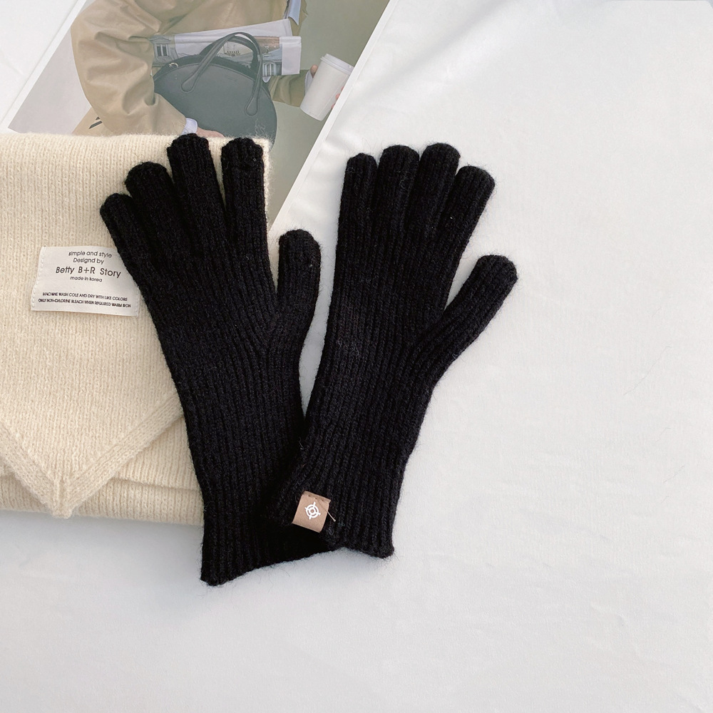 단색 양모 니트 장갑 한국 라벨링 흑백 손가락 터치 스크린 따뜻한 길어진 손목 밴드 남성과 여성 가을 겨울 장갑