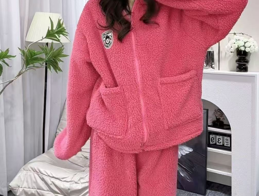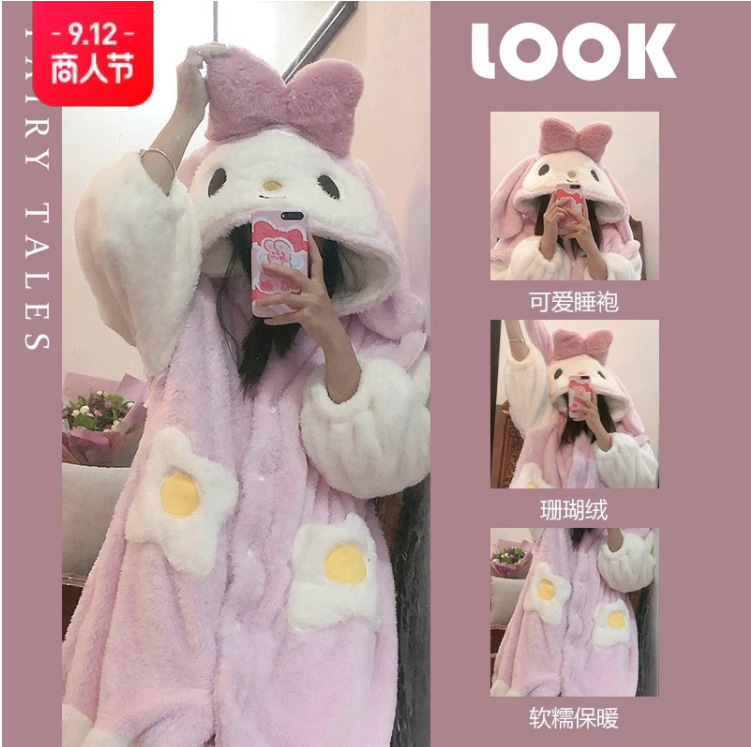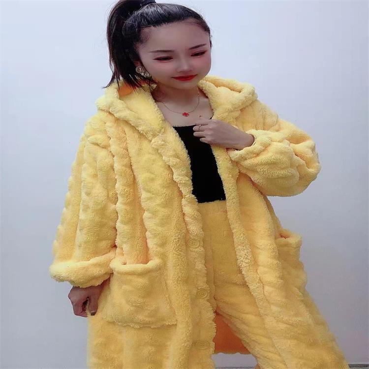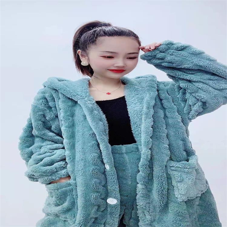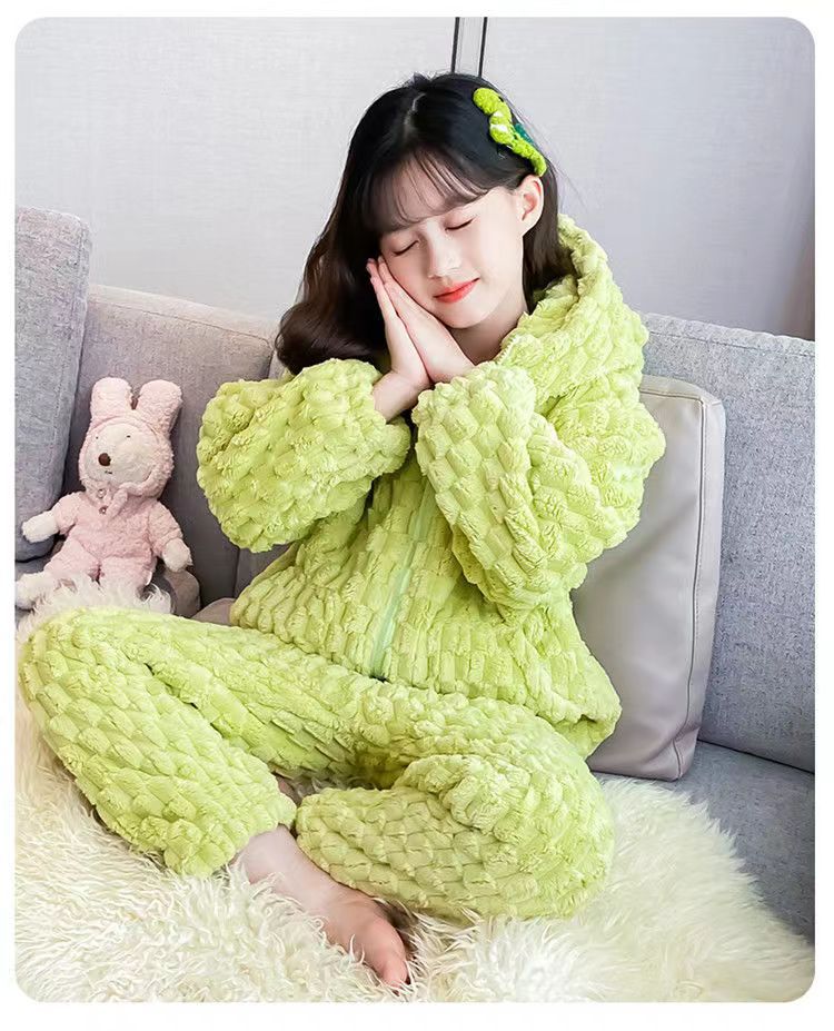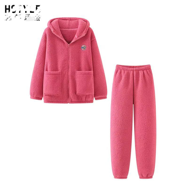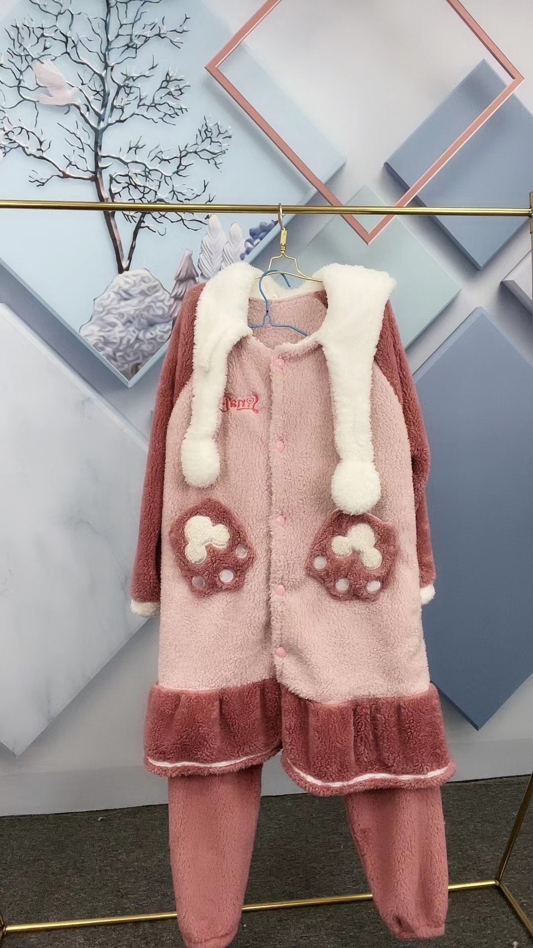 가을과 겨울 산호 양털 잠옷 여자의 겨울 두꺼운 기모 겨울 컷 꽃 곰 새로운 세트 가정 옷 플란넬