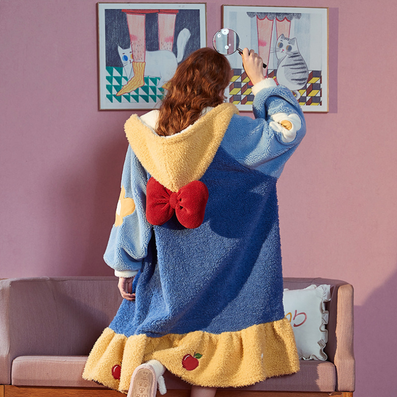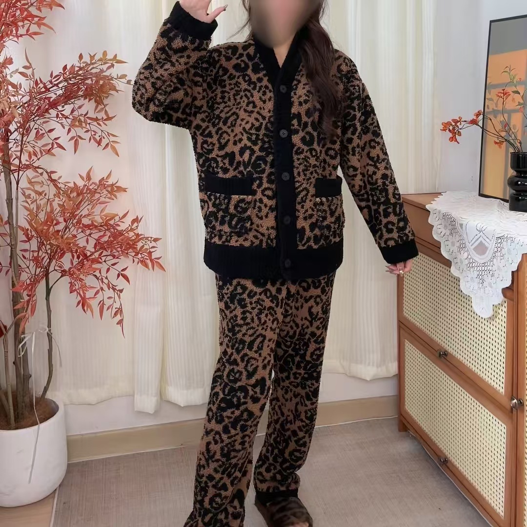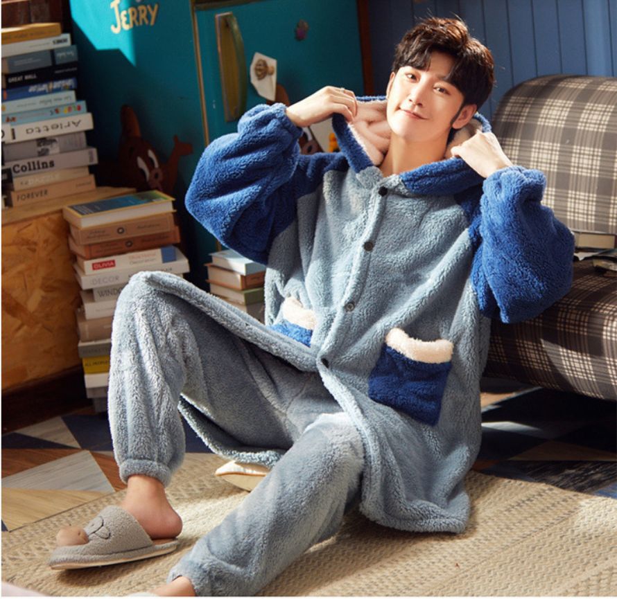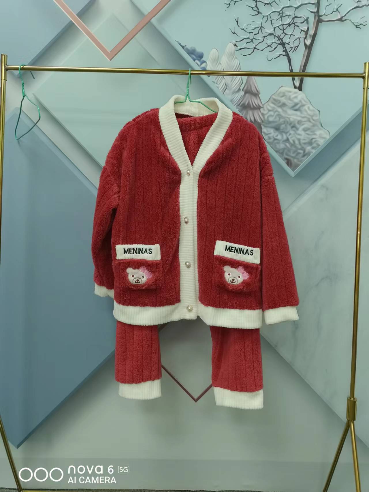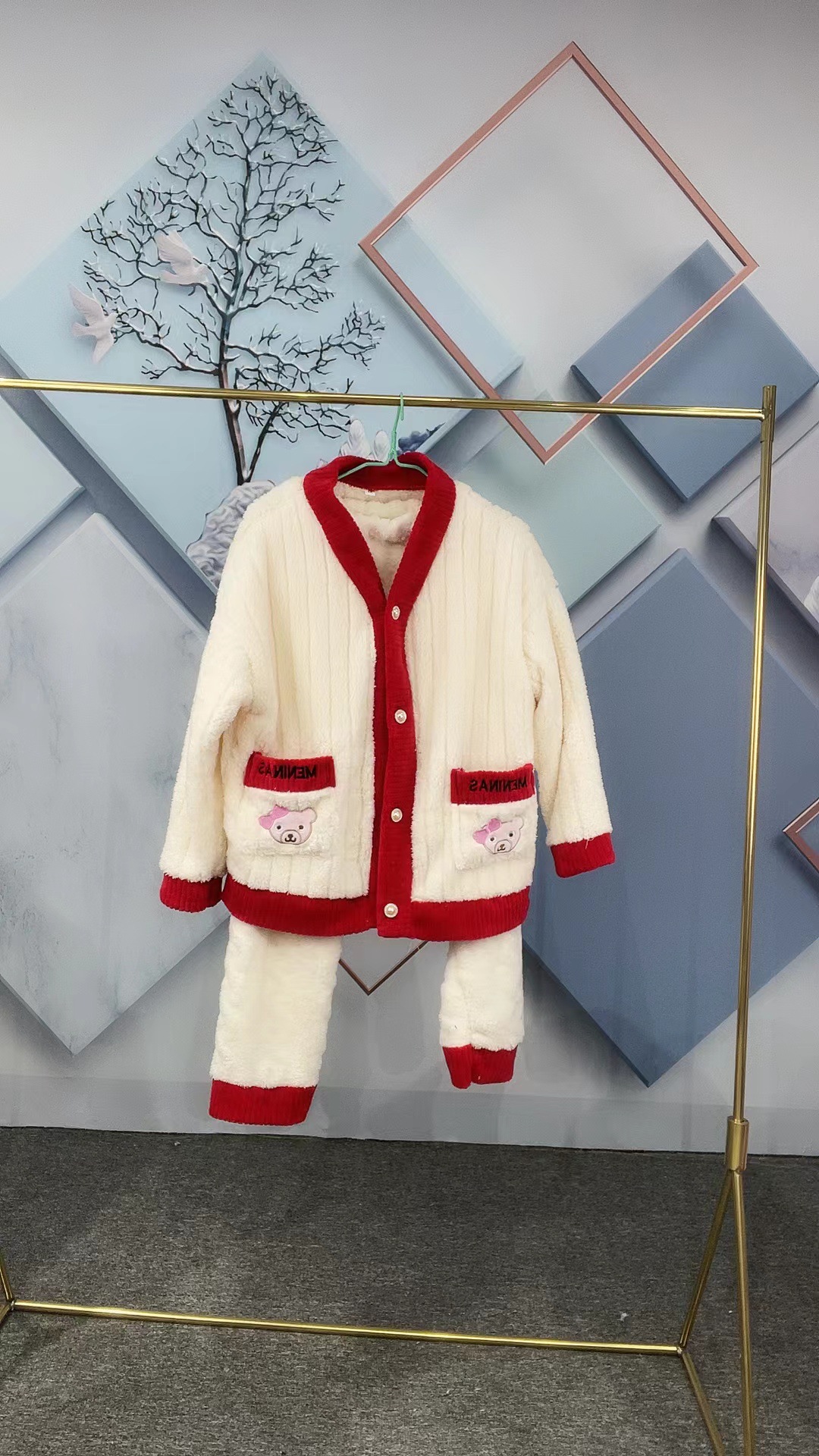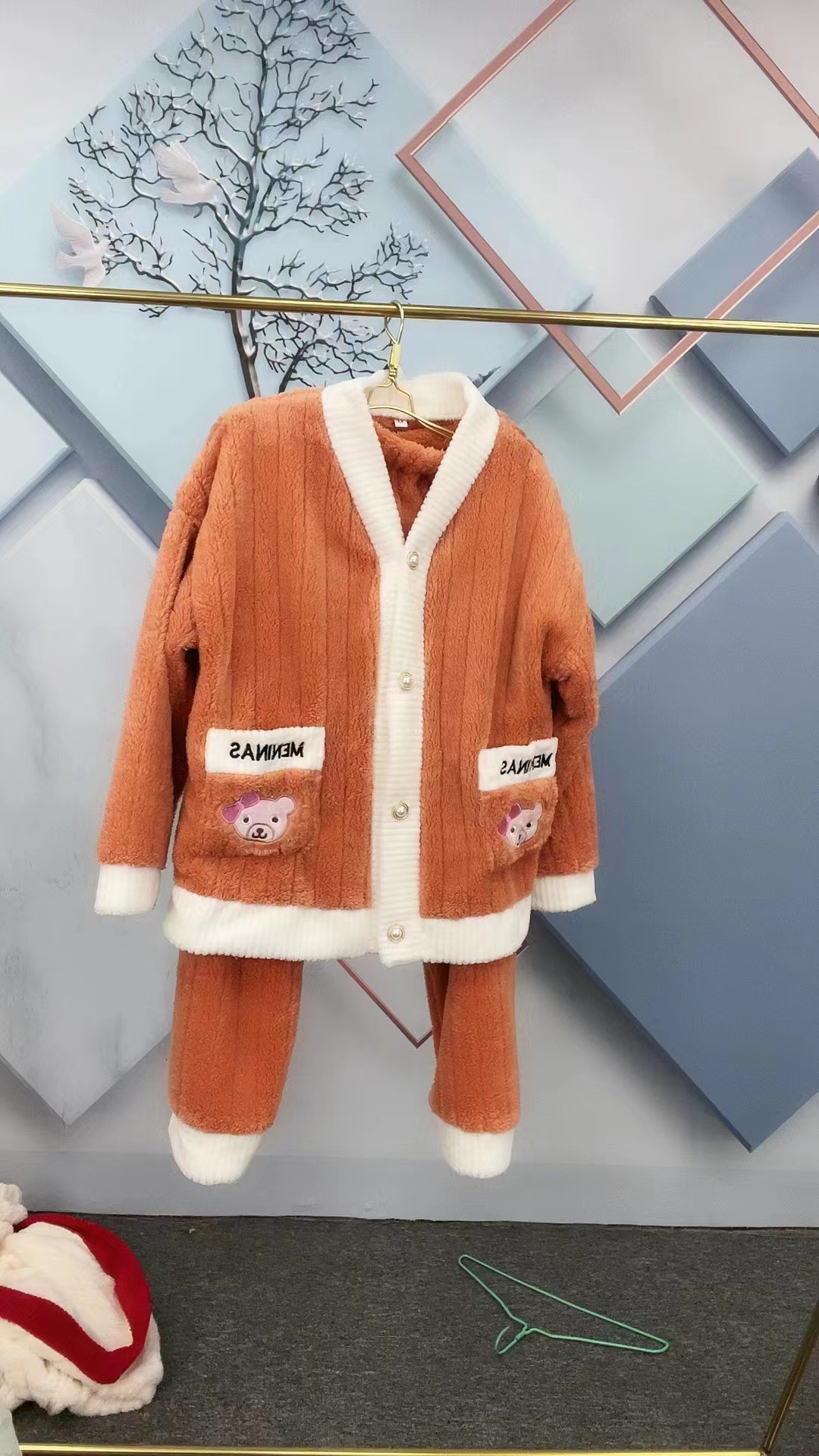 가을과 겨울 산호 양털 잠옷 여자의 겨울 두꺼운 기모 겨울 컷 꽃 곰 새로운 세트 가정 옷 플란넬