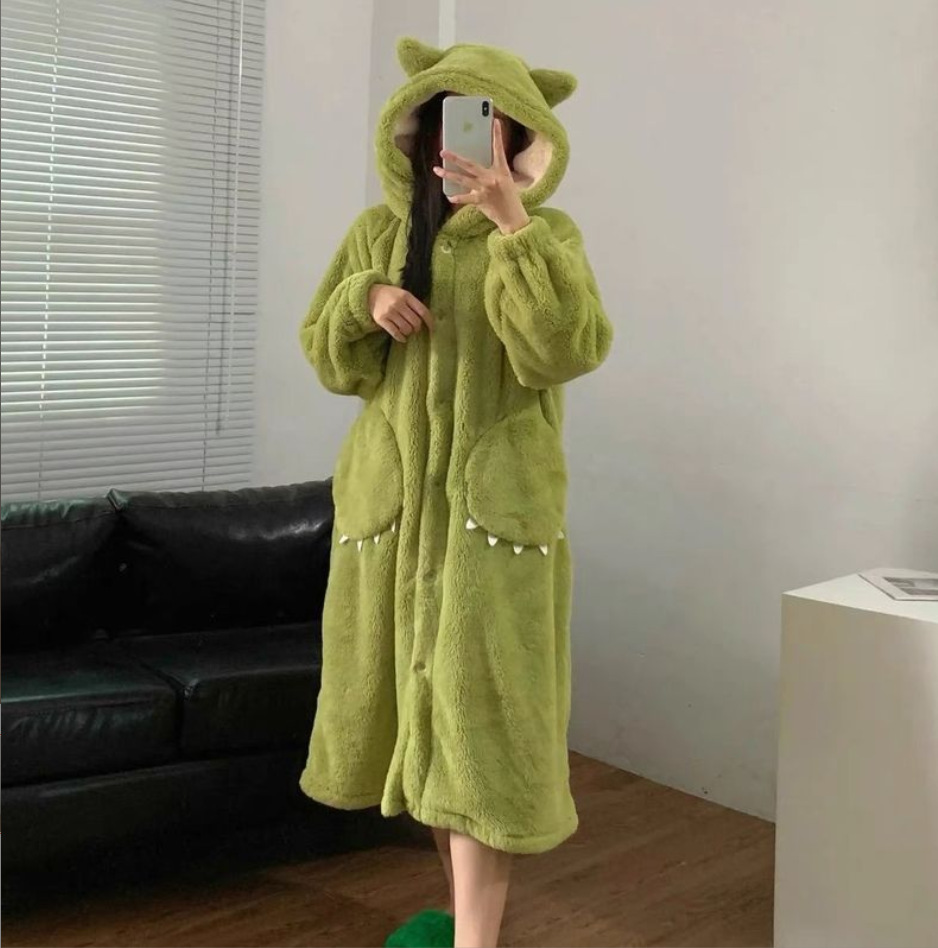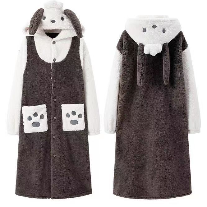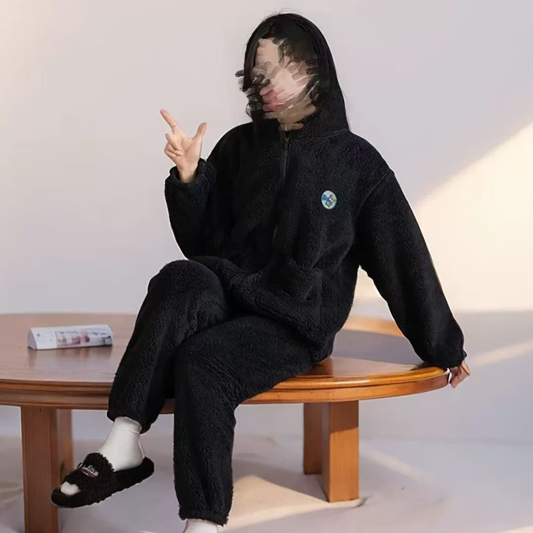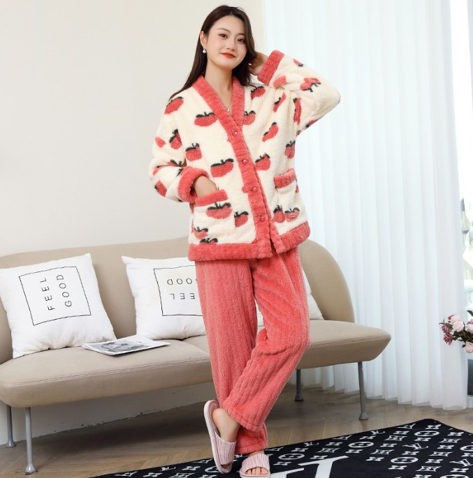 가을과 겨울 산호 양털 잠옷 여자의 겨울 두꺼운 기모 겨울 컷 꽃 곰 새로운 세트 가정 옷 플란넬스토어 가기