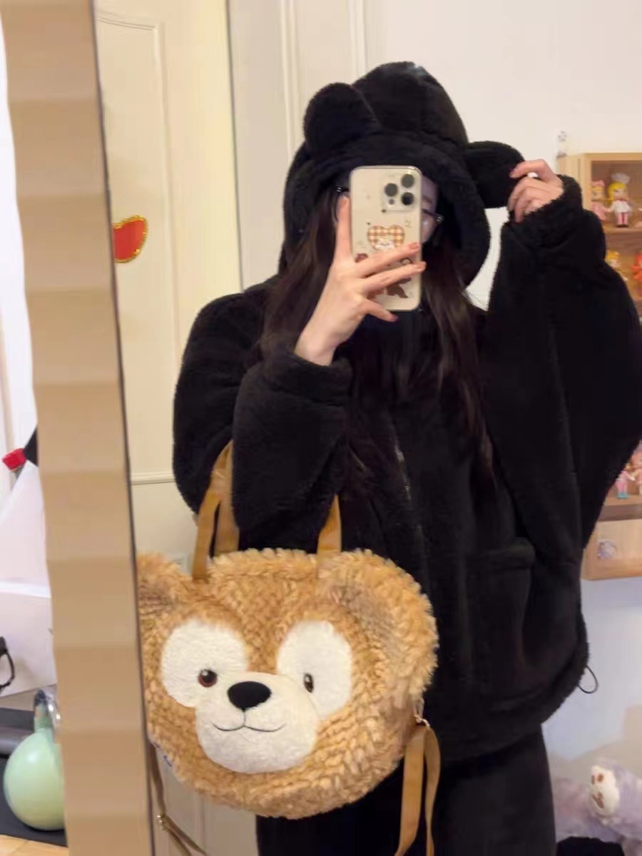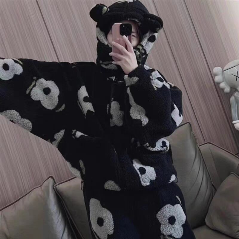 • 매화 빨간 지퍼 후드 귀 방패 곰