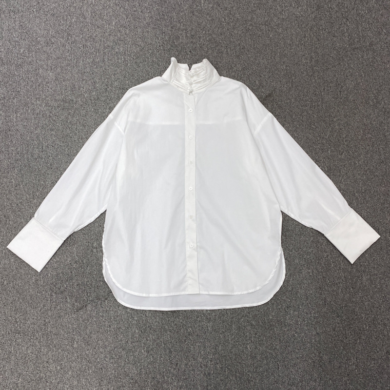 롱메이 신중국풍 화이트 셔츠 여성용 2025 초가을 신상 루즈핏 스탠드 칼라 싱글 버튼 긴팔 상의스토어 가기