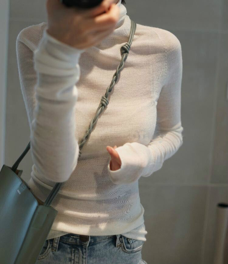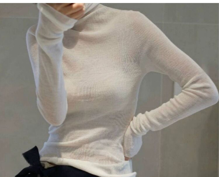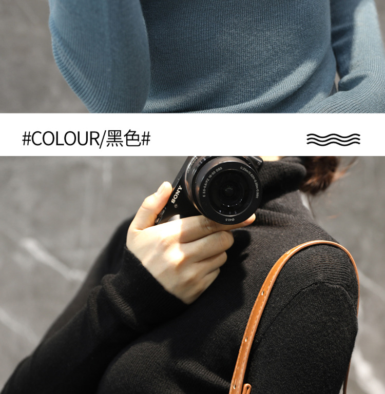 2021秋冬新款亲肤薄款堆堆领羊毛衫女紧身高领微透针织打底衫毛衣