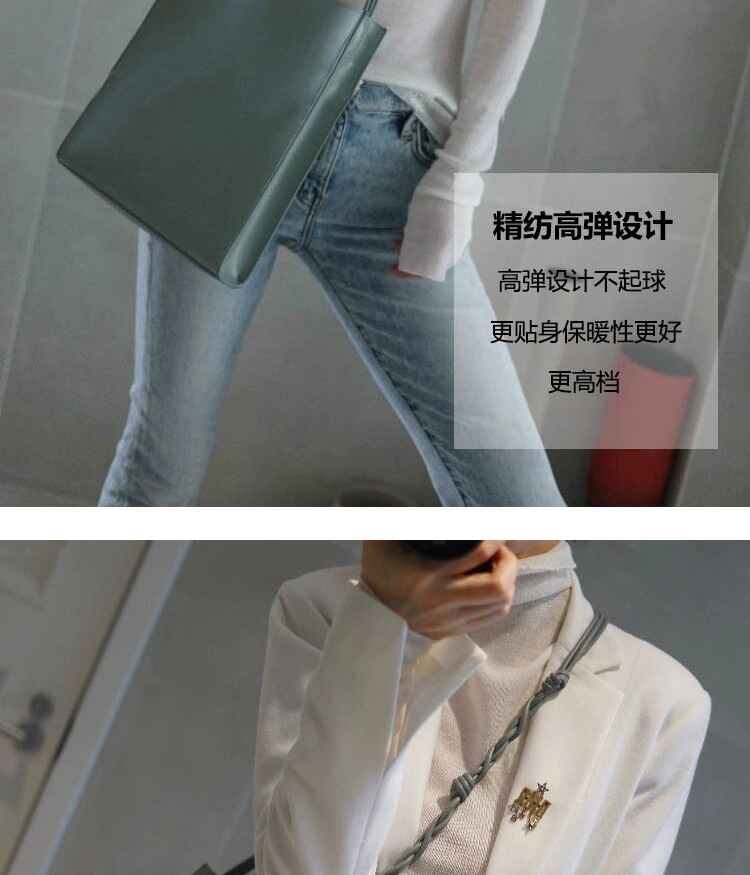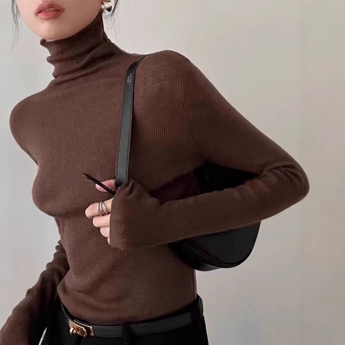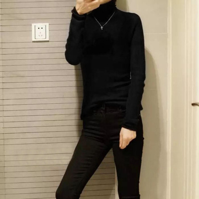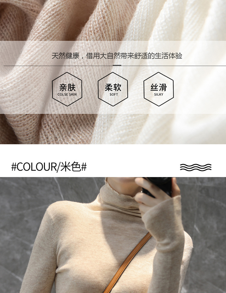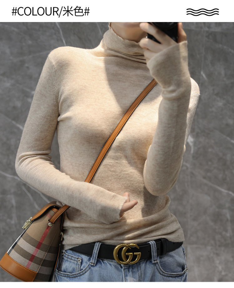 봄과 가을 새로운 피부 친화적 인 얇은 파일 칼라 울 스웨터 여성용 타이트 하이 넥 마이크로 침투 니트 베이스 스웨터 한국 스타일스토어 가기