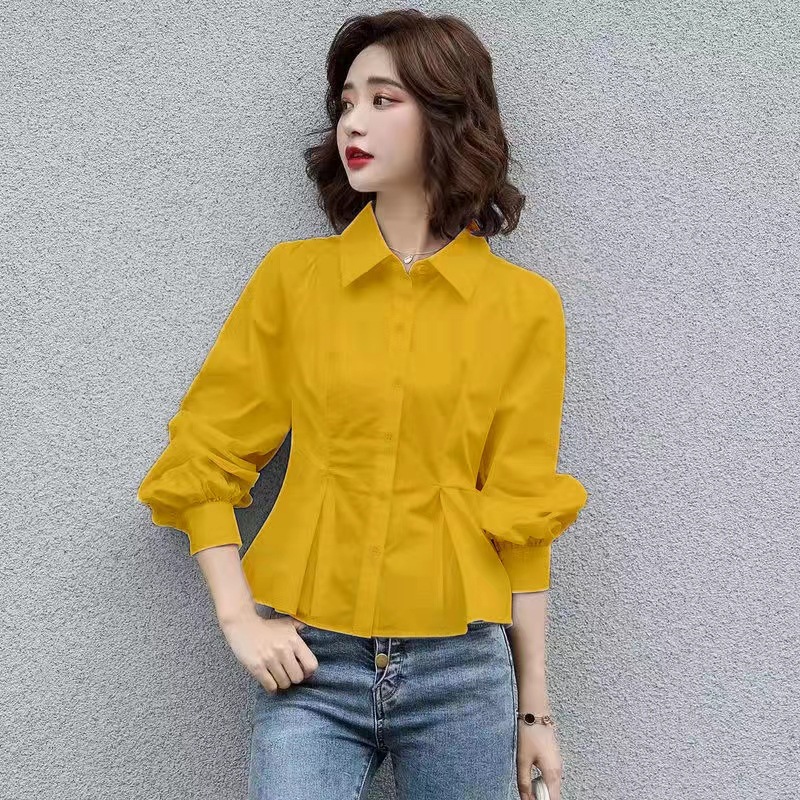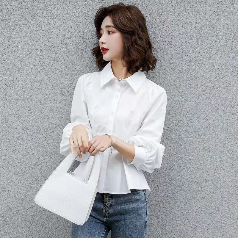 새로운 라펠 일본식 우아한 통근 슬림핏 가디건 싱글 브레스트 솔리드 컬러 화이트 긴팔 셔츠 탑스토어 가기
