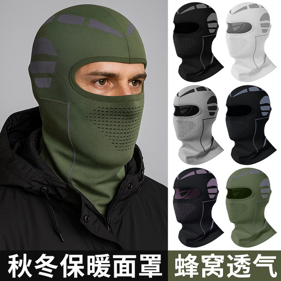 亚马逊秋冬全脸保暖面罩男士摩托车防寒头套多用途抓绒防风套头帽