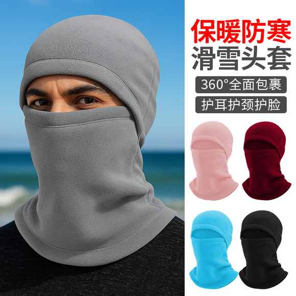 亚马逊骑行头套保暖摩托车秋冬防风摇粒绒面罩可调节多功能套头帽
