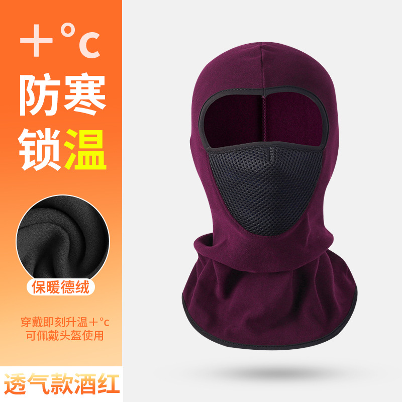 冬季骑行德绒保暖面罩摩托车头盔防寒套头帽户外运动双孔防风头套