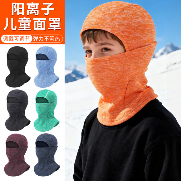 跨境冬天儿童防风面罩围脖一体亲子同款滑雪头套阳离子加绒套头帽