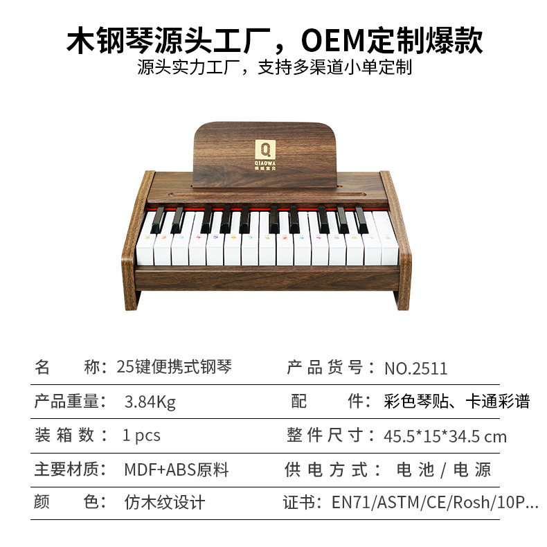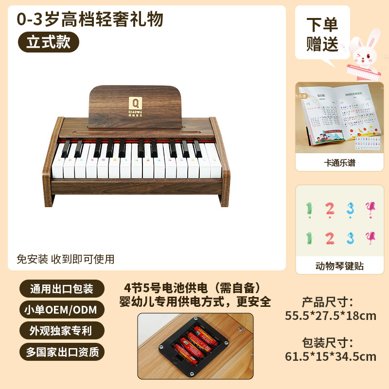 Q BABY 어린이 피아노 전자 키보드 장난감, 연주 가능, 아기, 소녀 선물, 남아용, 나무, 크리스마스