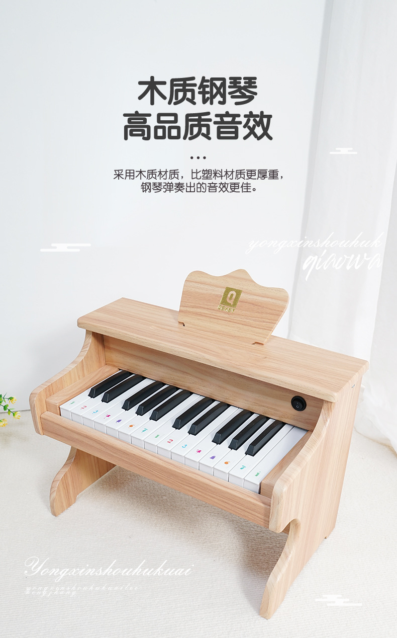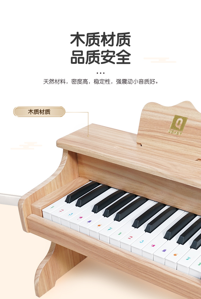 Q BABY 어린이 피아노 전자 키보드 장난감, 연주 가능, 아기, 소녀 선물, 남아용, 나무, 크리스마스스토어 가기