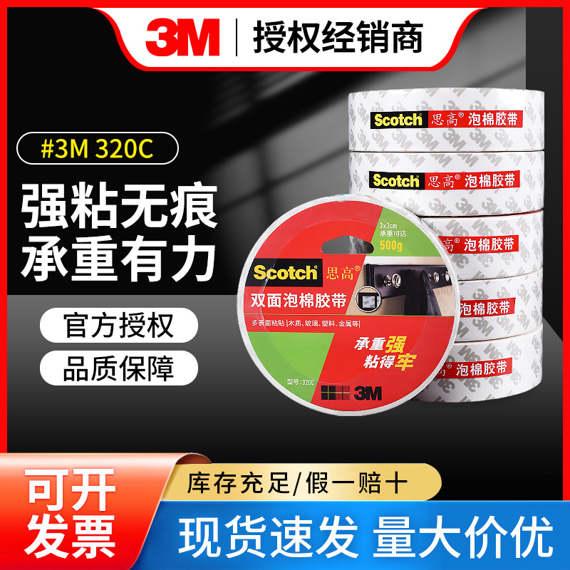 3M 320C 폼 양면 테이프 스트레치 방지 고온 방지 찢어지기 쉬운 사진 프레임 명판 붙여 넣기 고정 sigao 문구스토어 가기