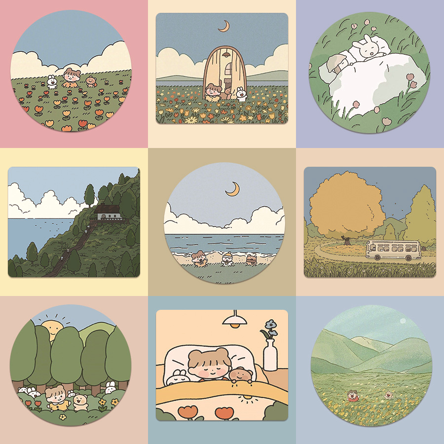 곰과 토끼 마우스 패드 스몰 사이즈 미끄럼 방지 잠금 가장자리 학생 사무실 데스크탑 기숙사 사무실 게임 귀여운 테이블 매트스토어 가기